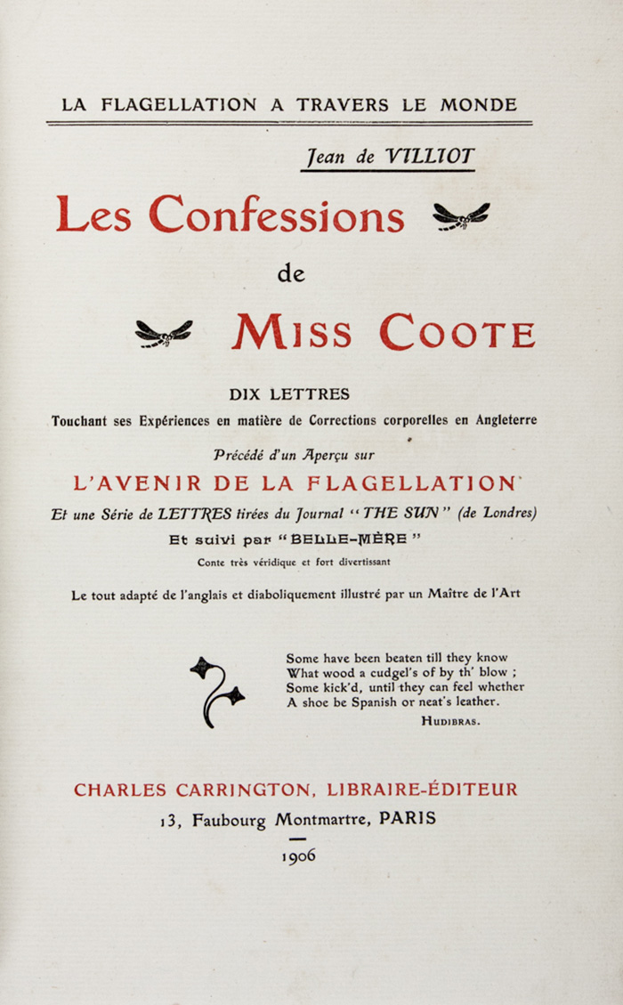 De Villiot Jean, Les confessions de Miss Coote.Paris: Charles...