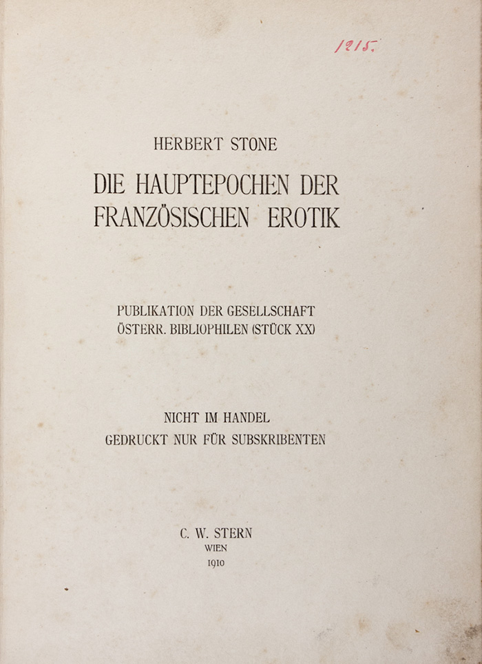 Stone Herbert, Die Hauptepochender franzosischen Erotik. Wien: C.W....