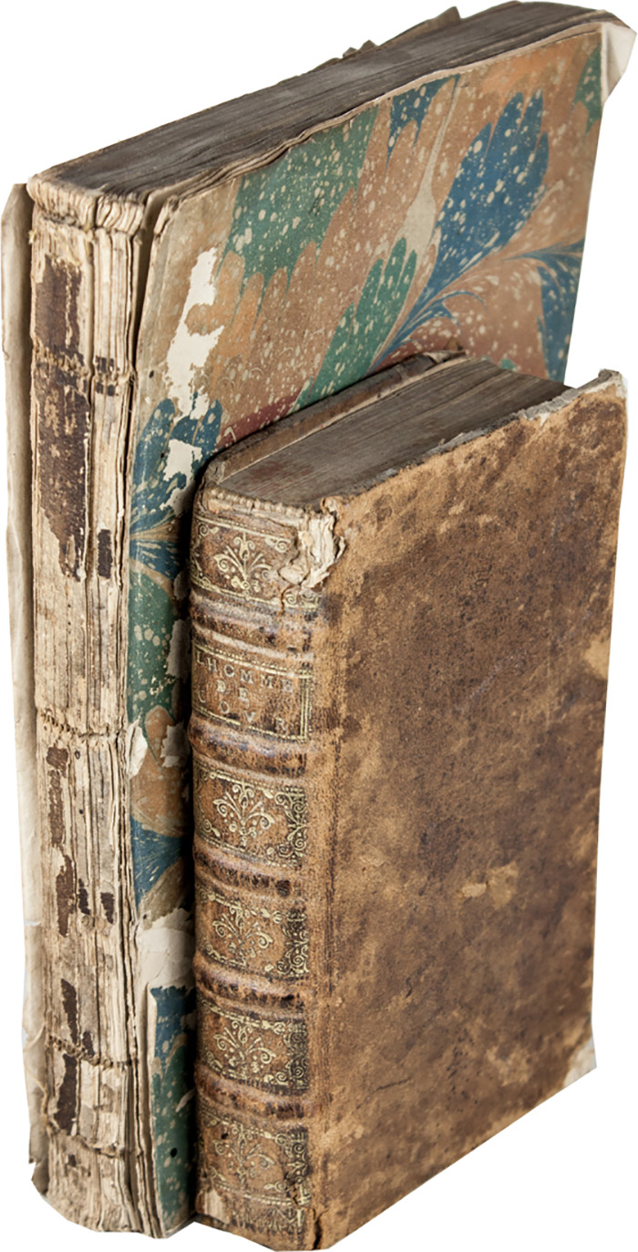In-4° (mm 225x155). Pagine [8], 256. Antiporta calcografico. Marca incisa in legno al frontespizio. Qualche evidente gora d'acqua marginale e fioritura. Legatura in carta decorata priva del dorso e con mancanza e strappo al piatto posteriore. SI AGGIUNGE: Gracián Baltasar, L'homme de cour. A Lyon: Chez Francois Barbier, 1693. In-12° (mm 165x90). Pagine [68], 337 [i.e. 373], [3]. Antiporta inciso in rame. Minime fioriture e qualche carta leggermente brunita, ma buona copia. Legatura coeva in piena pelle con titoli e fregi dorati al dorso. Punte stanche e alcune mancanze al dorso. Nota manoscritta al contropiatto anteriore. (2)