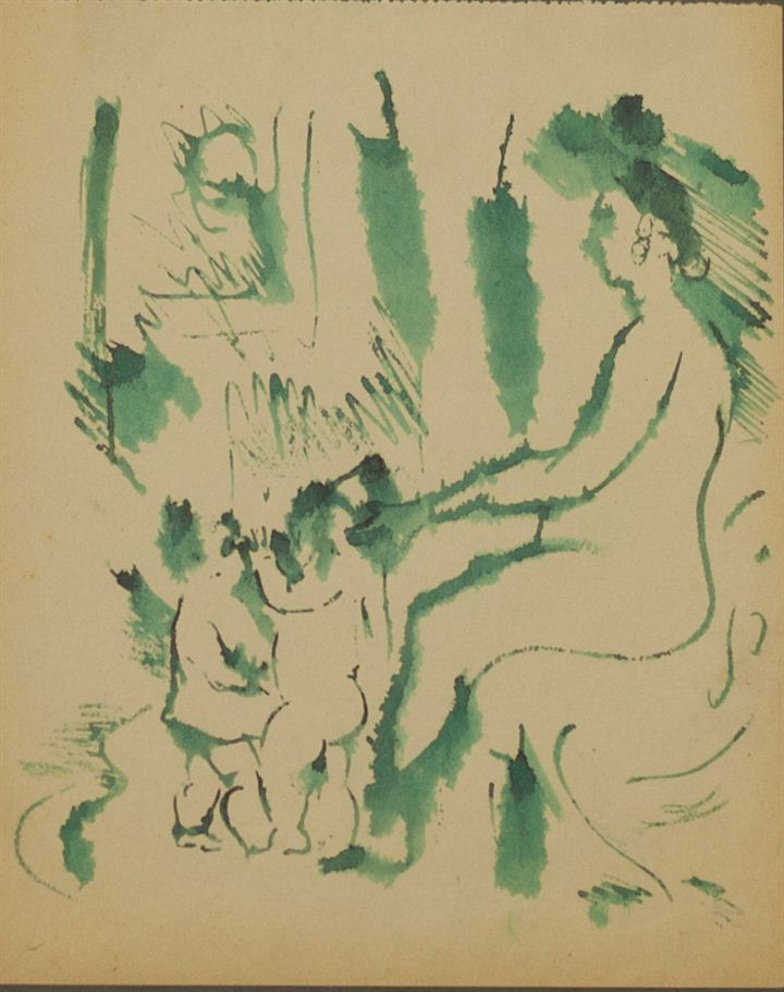 CHICCO RICCARDO Torino 1910 - 1973 "Maternità" 14,5x12 china verde su carta