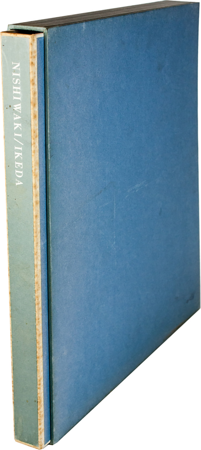 In-folio (mm 380x285). Pagine [48], con due acqueforti originali di Ikeda e un facsimile del manoscritto con firme degli Autori. Esemplare numero 4/35 su una tiratura complessiva di 149. Fogli sciolti con copertina, custodia e astuccio di cartone celeste con titoli al dorso. Ottime condizioni.