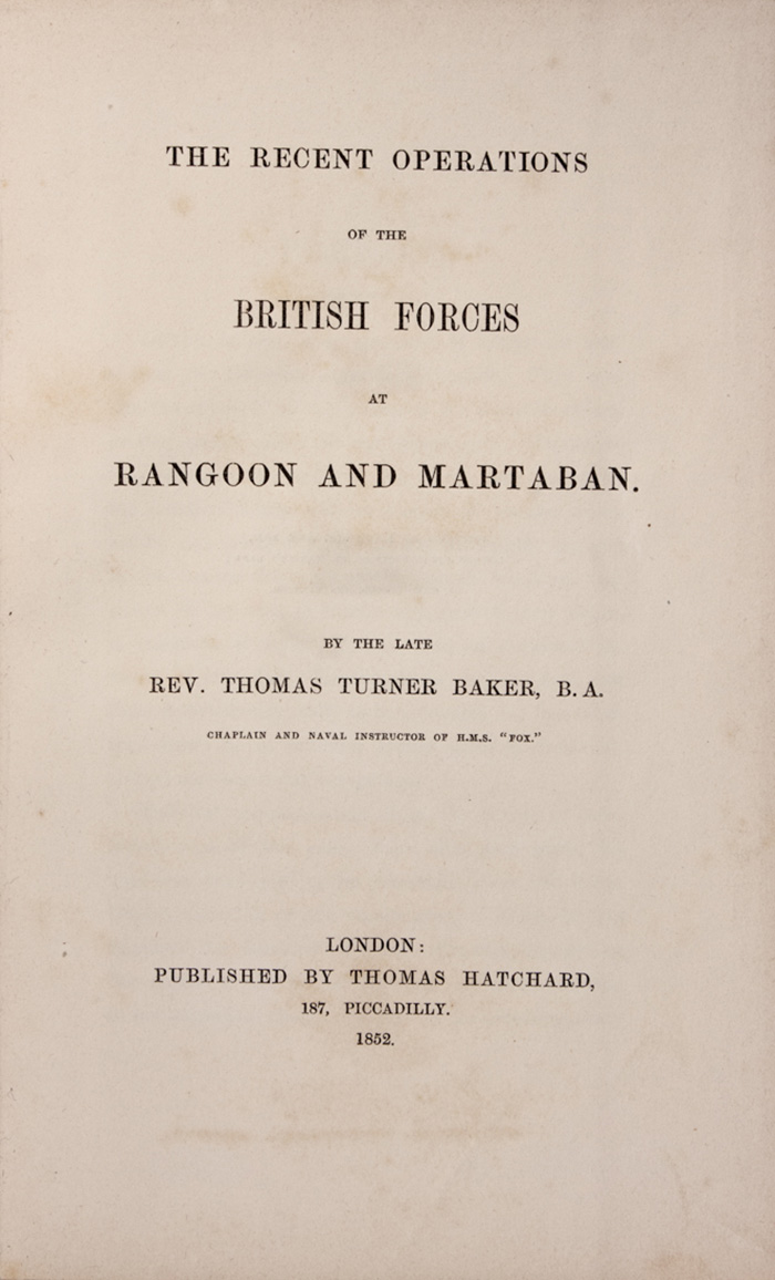 Turner Baker Thomas, The recent operations of the British forces at Rangoon and Martaban.