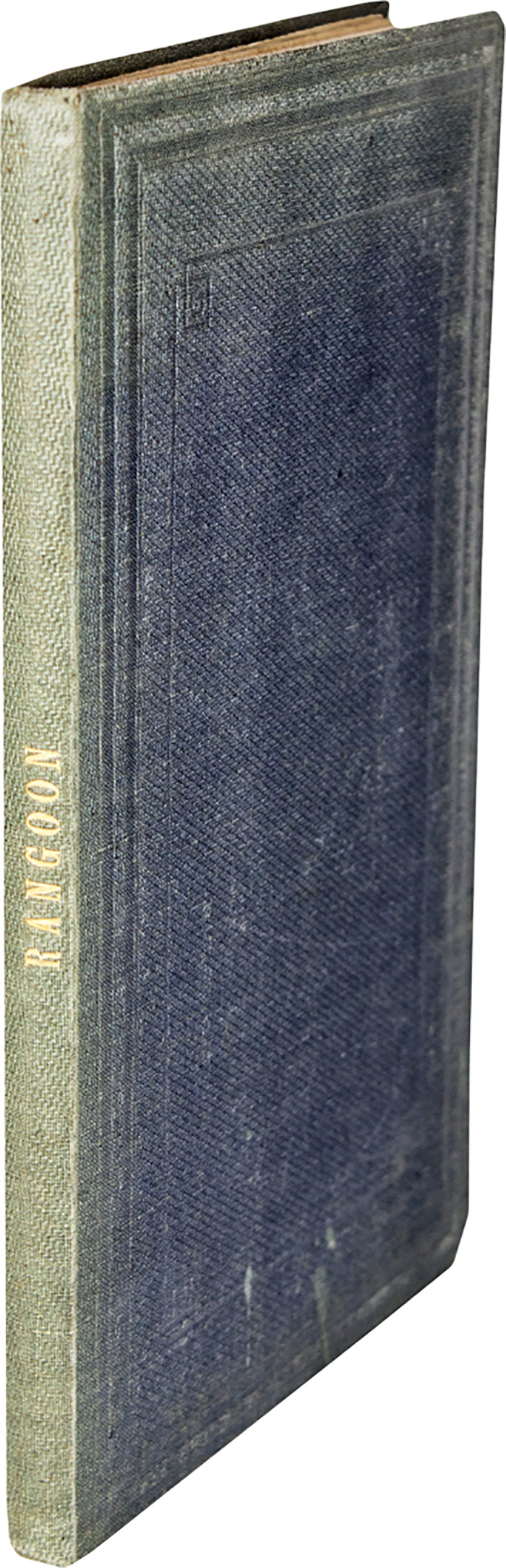 In-8° (mm 223x140). Pagine VII, [1]; 78, [2], con 4 tavole incise a colori. Frontespizio preceduto da antiporta colorata protetta da velina e 3 tavole di imbarcazioni di porti Birmani ripiegate a inizio volume. Alcune tracce di foxing, ma esemplare discreto e intonso. Legatura in tela editoriale coeva leggermente lisa con titolo dorato impresso al dorso.
