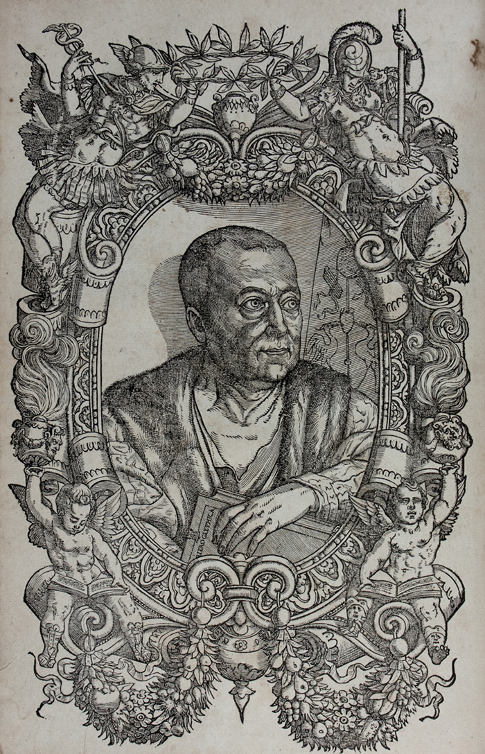 In-folio (mm 333x215). Carte [10], [6] (paginate 1-12), 13-441, [25]. Con un bellissimo ritratto dell'Autore inciso in legno al verso del frontespizio. Marca dello stampatore al frontespizio e ripetuta in fine, capilettera figurati e moltissime vignette di emblemi incise nel testo, il tutto xilografico. Alcune carte brunite e fioriture sparse, a tratti intense, ma buona copia. Legatura ottocentesca in mezza pelle con punte e piatti marmorizzati, con difetti alle cerniere.