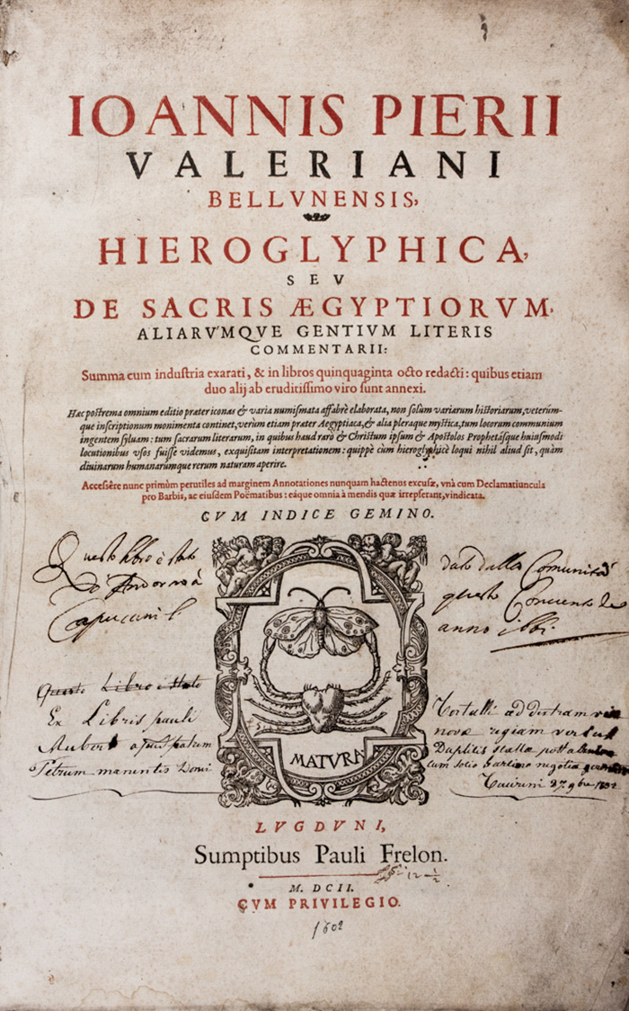 Valeriano Pierio, Hieroglyphica, seu de sacris Aegyptiorum, aliarumque...