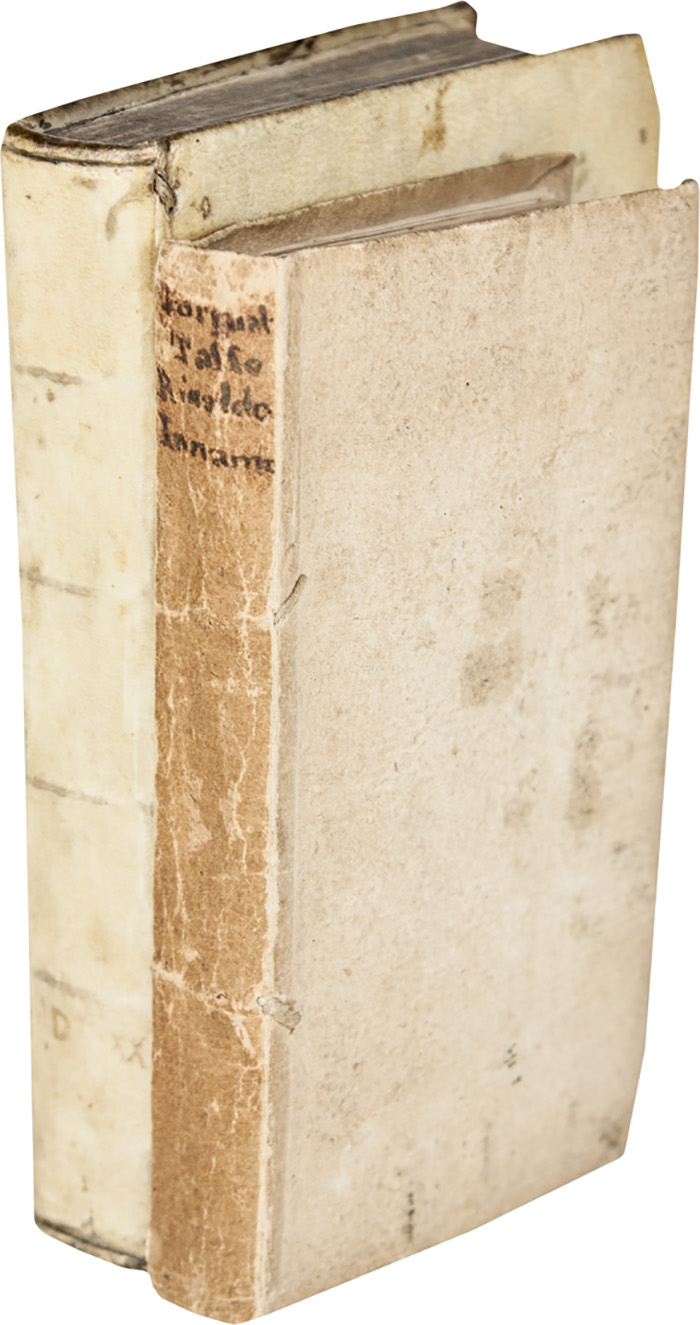 6 parti in 1 volume in-8° (mm 140x90). Carte 24, 23, 20, 19, [1], 27, [1], 25, [7]. Primo frontespizio inciso in legno rincollato e con mancanze ai margini; seguono altri 5 frontespizi, ognuno con marca tipografica incisa in legno. Numerose xilografie nel testo. Alcune gore d'acqua e alcuni restauri ai margini interni. Esemplare rifilato lungo il margine inferiore. UNITO A: Id., Il sesto di Vergilio... In Venetia: Al segno del Pozzo, 1540. Carte 32. Lavoro di tarlo marginale a tutte le carte con restauro evidente. Gore d'acqua marginali, lievi arrossature e restauro all'ultima carta. Legatura settecentesca in piena pergamena rigida, dorso a quattro nervi e lavoro di tarlo al piatto anteriore. Ex-libris nobiliare al contropiatto anteriore. SI AGGIUNGE: Tasso Torquato, Rinaldo innamorato. In Venetia: presso Aldo, 1583. In-12° (mm 125x70). Pagine 276, [36]. Frontespizio controfondato con ancora aldina incisa in legno. Esemplare con vari restauri e gore d'acqua. Legatura successiva in cartone con titoli manoscritti al dorso e qualche abrasione nei piatti. (2)