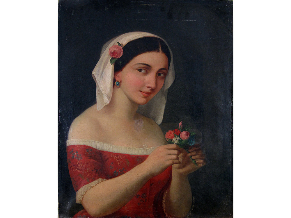 Lot 11 | Anonimo (XX secolo) Giovinetta con mazzolino di fiori 74x60 cm Olio su tela