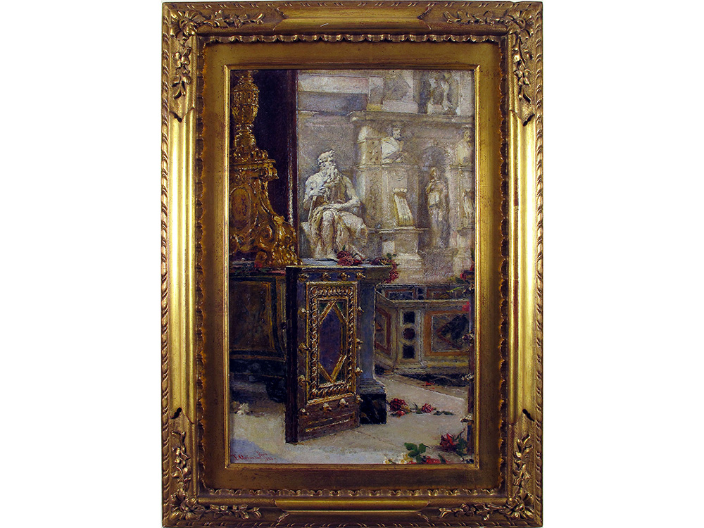 Tullio Salvatore Quinzio (1858–1918) Mose di Michelangelo (interno della basilica di San Pietro in Vincoli-Roma) 46x29 cm Olio su tela