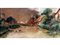 Leyton Forbes (1882 - 1953) Villaggio con cottage e galline 25x50 cm Acquarello su carta