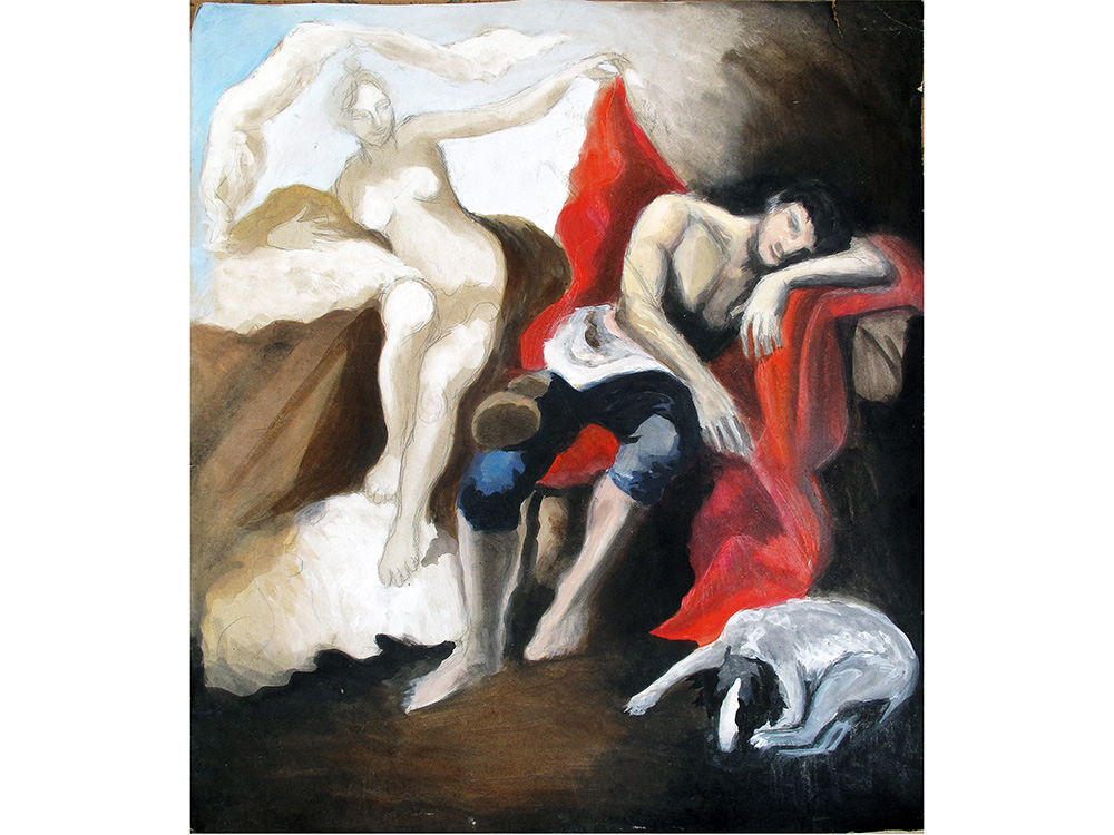 Anonimo (XX secolo) Il sogno 78x70 cm Tecnica mista su carta