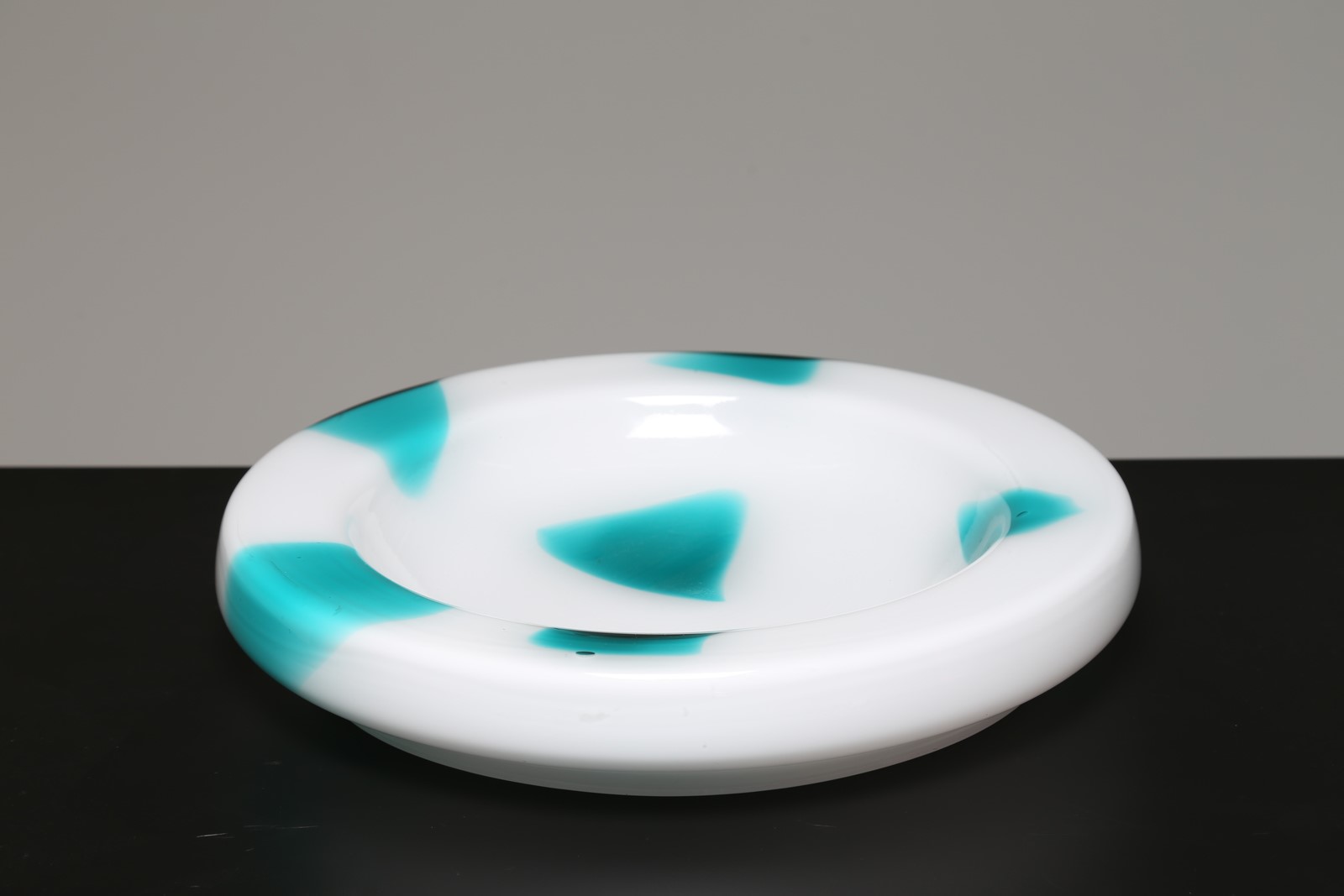 ZUCCHERI TONI (1937 - 2008) Centrotavola in vetro lattimo con triangoli verdemare, anni 60. -. Cm 36,00 x 6,00.