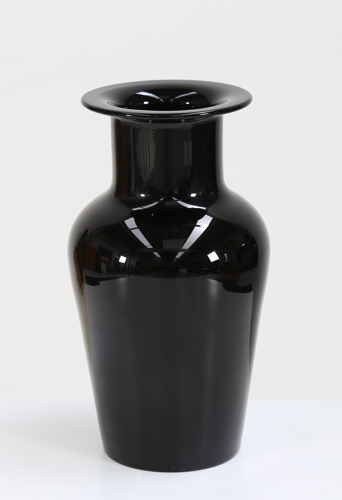 BAROVIER & TOSO Vaso in vetro nero, anni 70. -. Cm 17,00 x 32,00 x 17,00. Etichetta presente