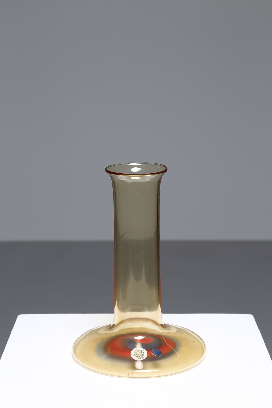 POTENZA GIANMARIA (n. 1936) Vaso bottiglia in vetro ambra e murrine, per La Murrina anni 60. 1968. . Cm 20,00 x 30,00 x 20,00. Etichetta presente