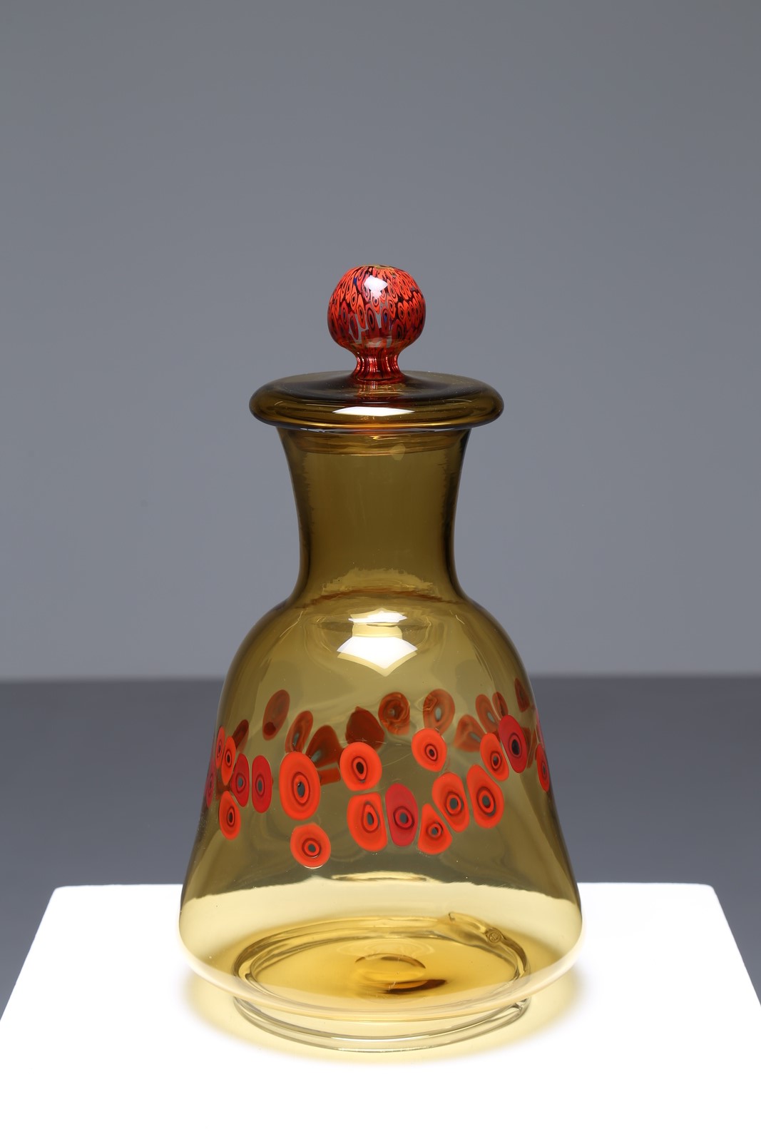 POTENZA GIANMARIA (n. 1936) Bottiglia con tappo in vetro ambra e murrine, per...