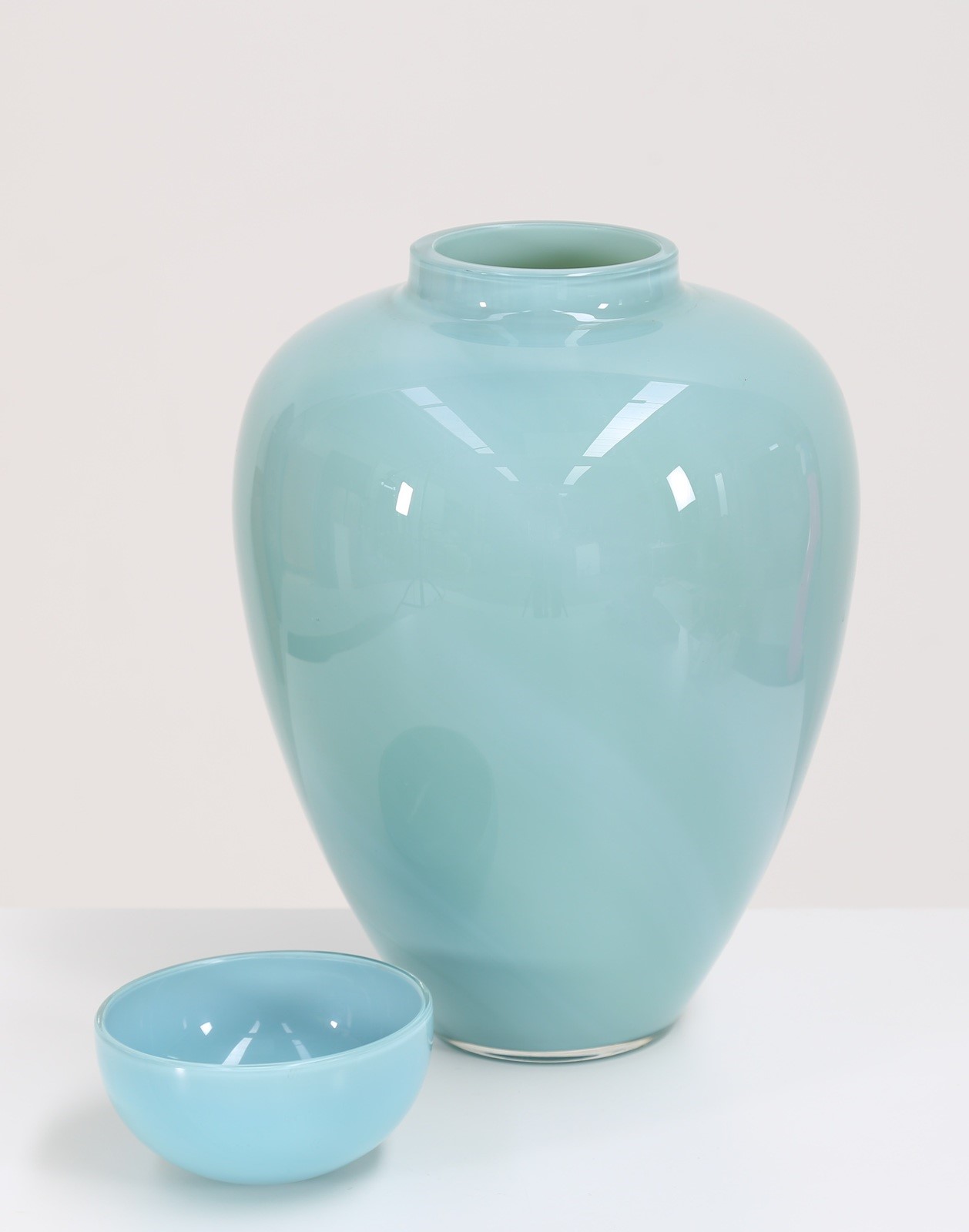 BAROVIER & TOSO Vaso con coperchio, . -. Cm 26,00 x 35,50 x 26,00. Etichetta e firma presente