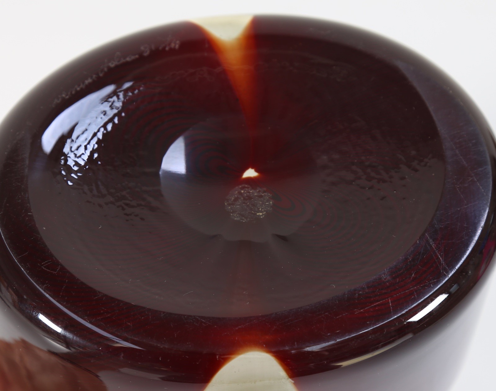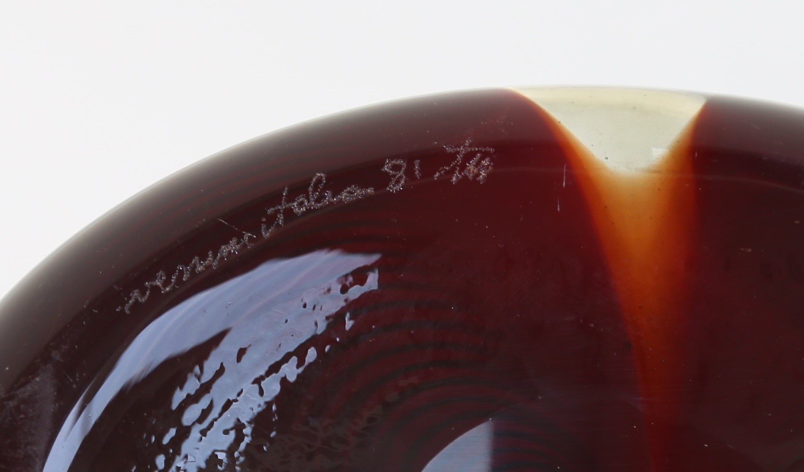 WIRKKALA TAPIO (1915 - 1985) Vaso serie Pavoni, per Venini 1981. -. Cm 16,50 x 21,00 x 13,00. Firma data ed etichetta presenti