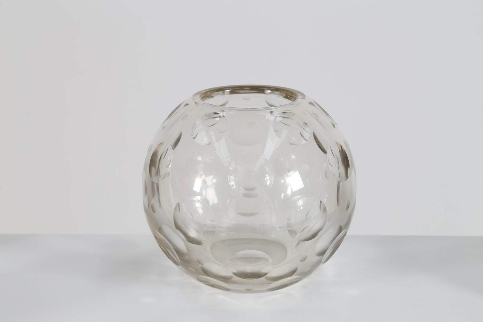 MAZZEGA Vaso in cristallo a semisfere convesse, per IVR. -. Cm 21,50 x 19,00...