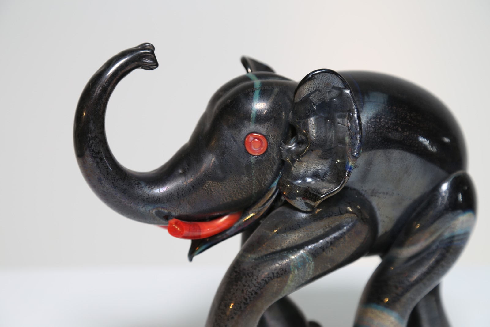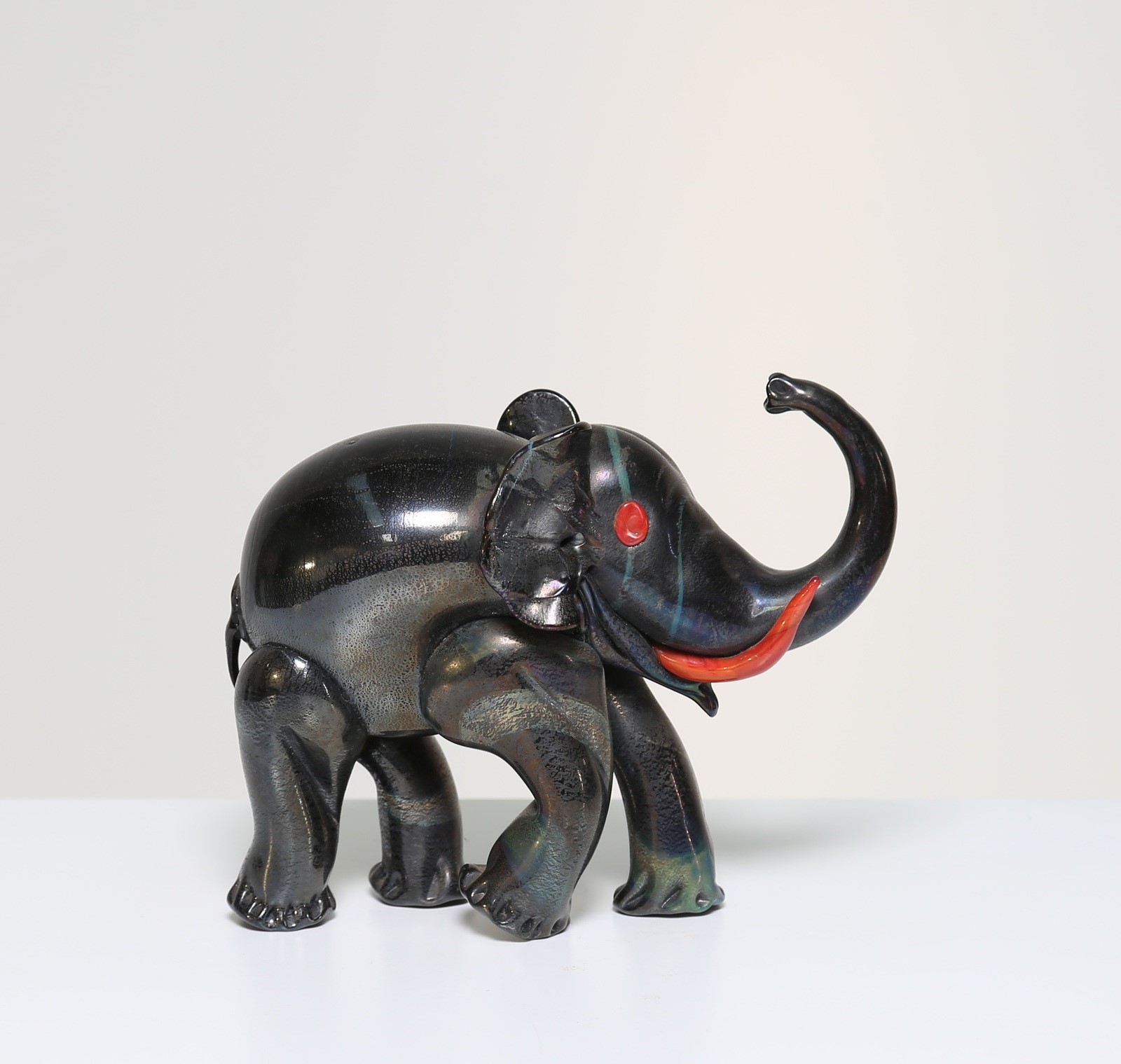 CAPPELLIN M.V.M Elefante in vetro di Murano in pasta nera e rossa a foglia...