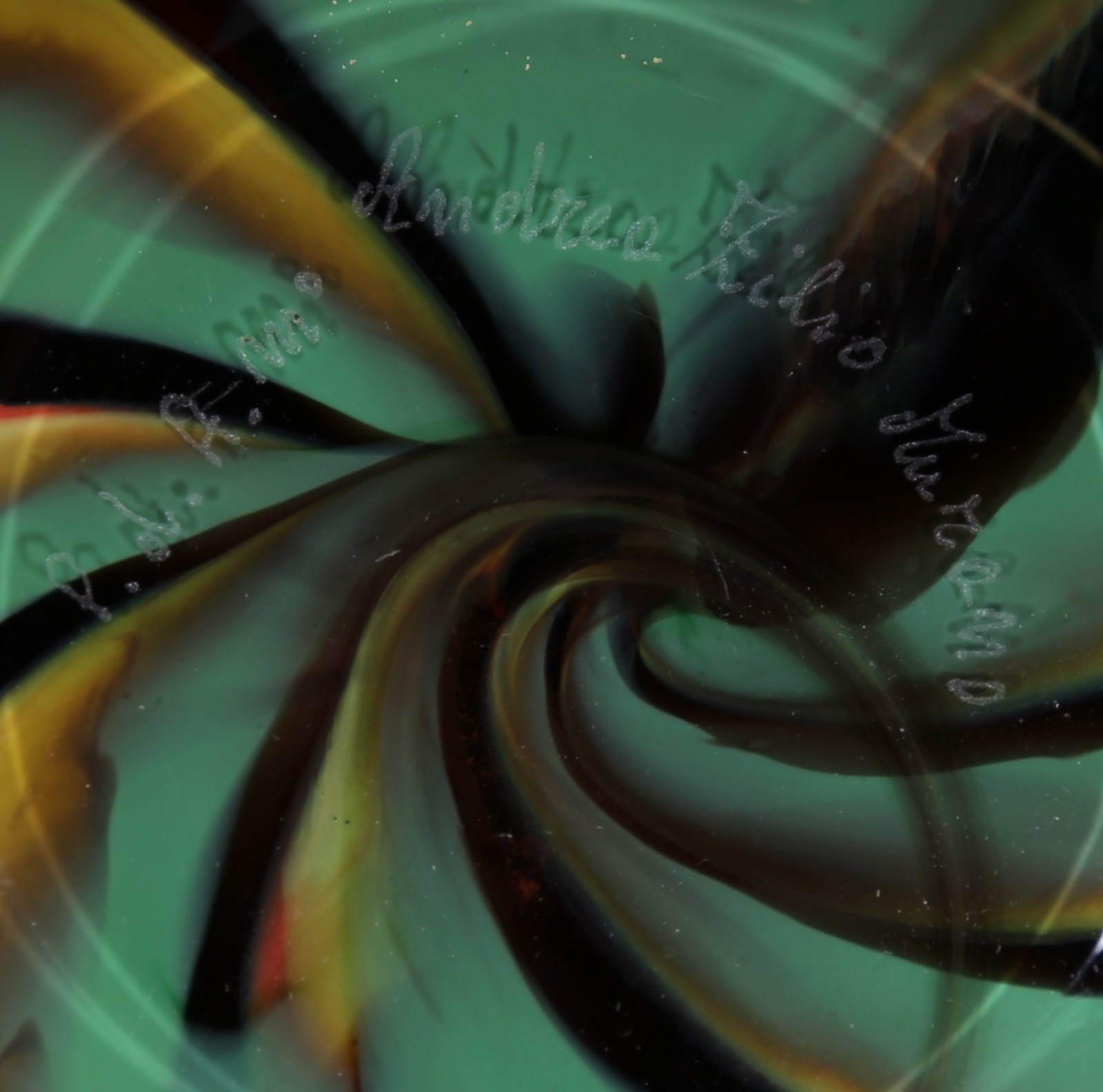 ZILIO ANDREA Vaso trottola a sommersioni circolari, prova d'autore, anni 90. . -. Cm 30,00 x 25,00. Firma presente