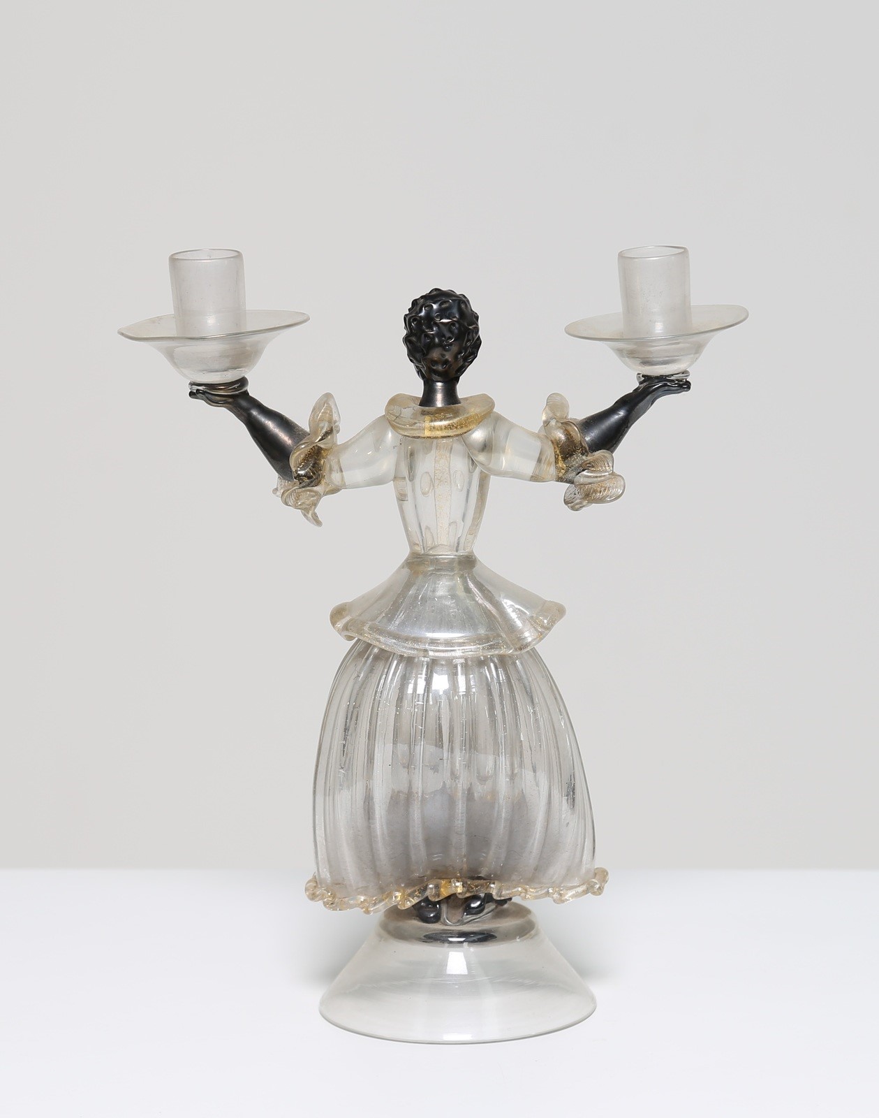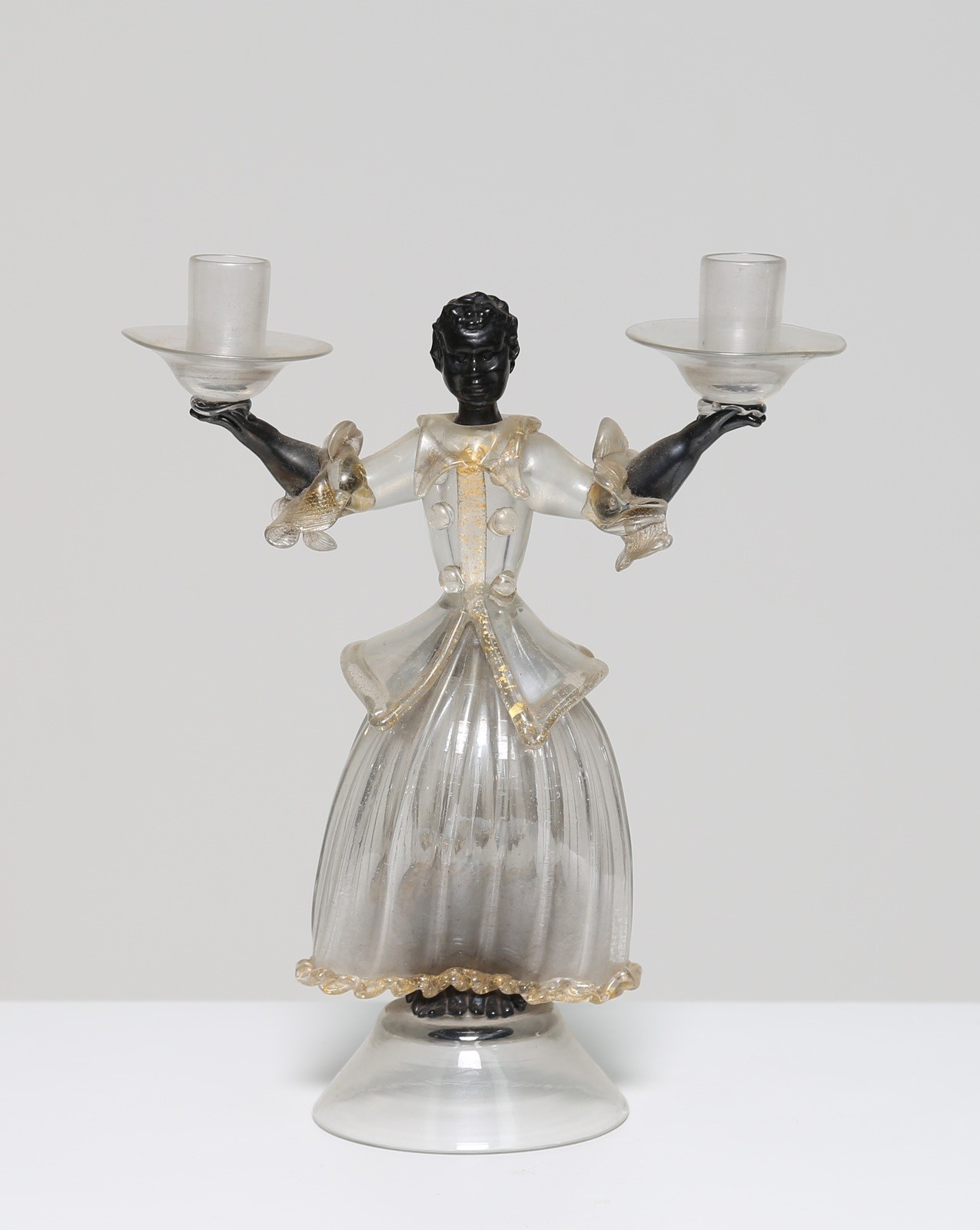 SEGUSO VETRI D'ARTE Candelabro in vetro pasta nera, cristallo e foglia oro...