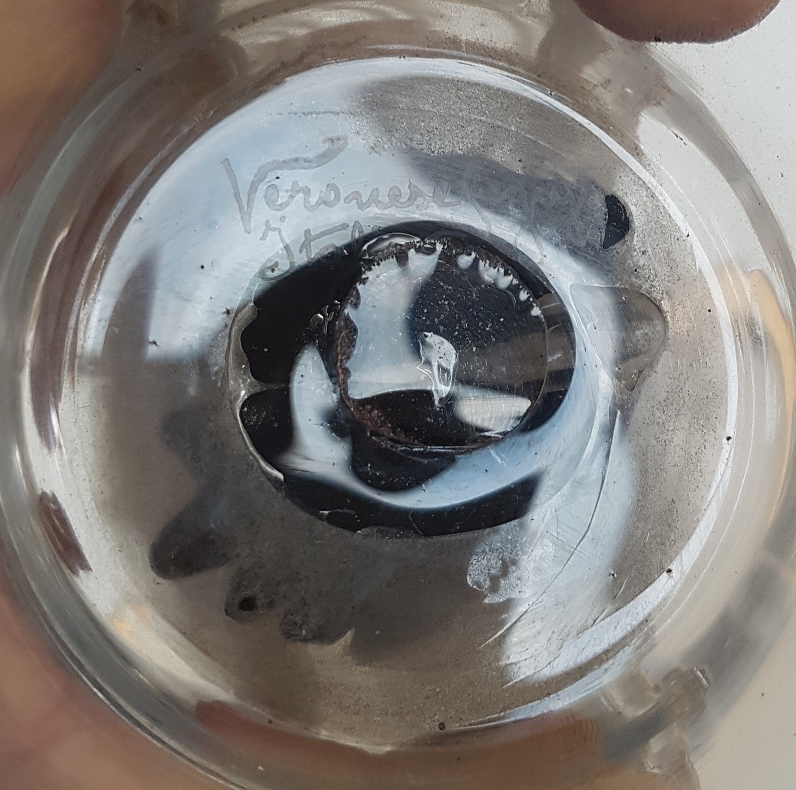 SEGUSO VETRI D'ARTE Candelabro in vetro pasta nera, cristallo e foglia oro anni 50° per Veronese Parigi. -. Cm 23,00 x 20,00 x 10,00.