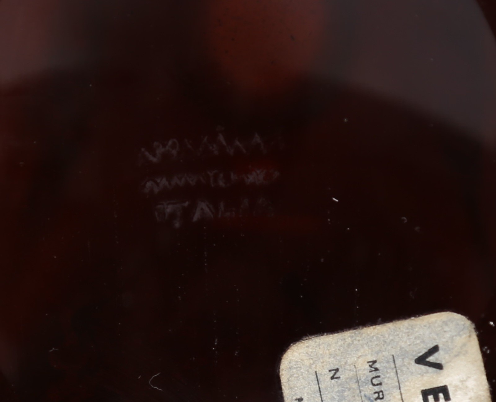 VENINI PAOLO (1895 - 1959) Bottiglia in vetro di Murano anni 50/60 °, per Venini. -. Cm 17,00 x 41,00 x 20,00. Firma all'acido e cartiglio presenti