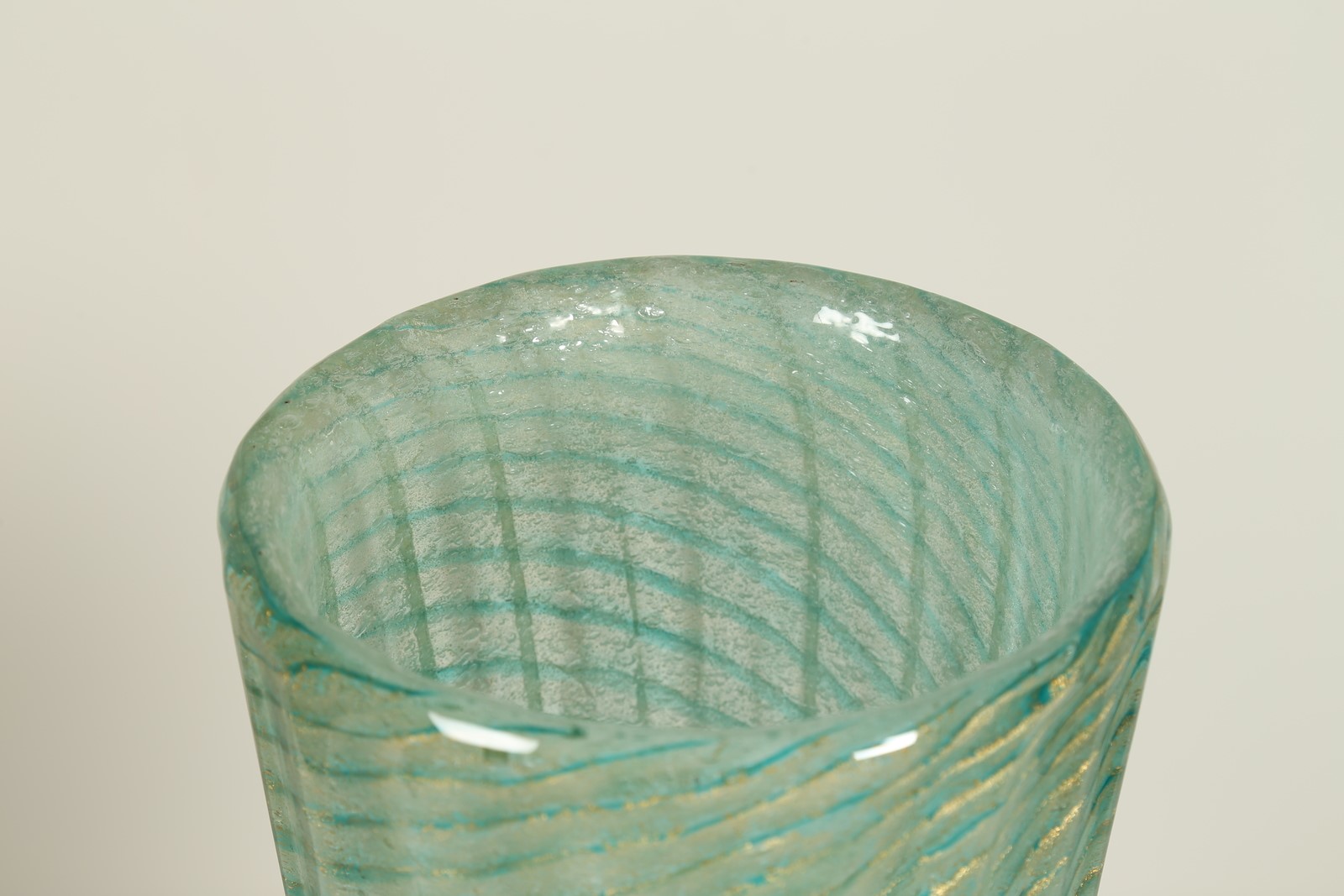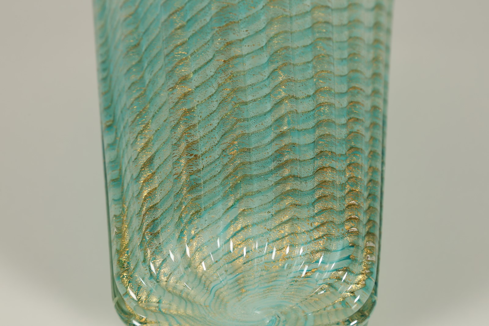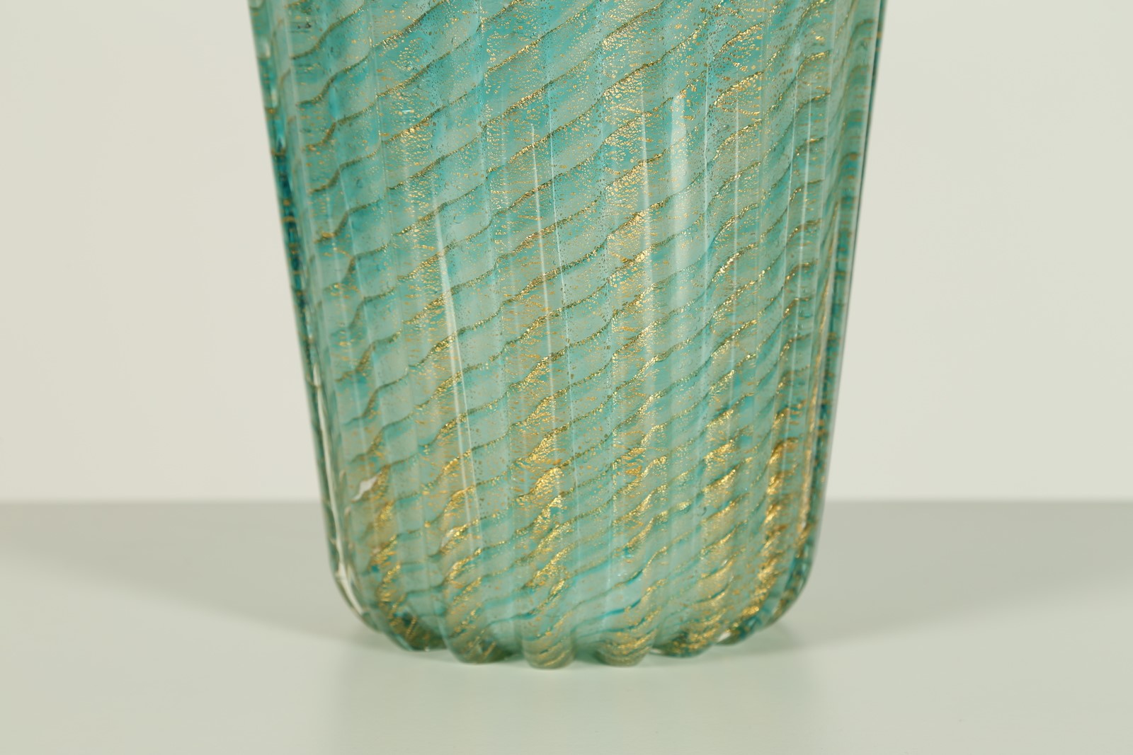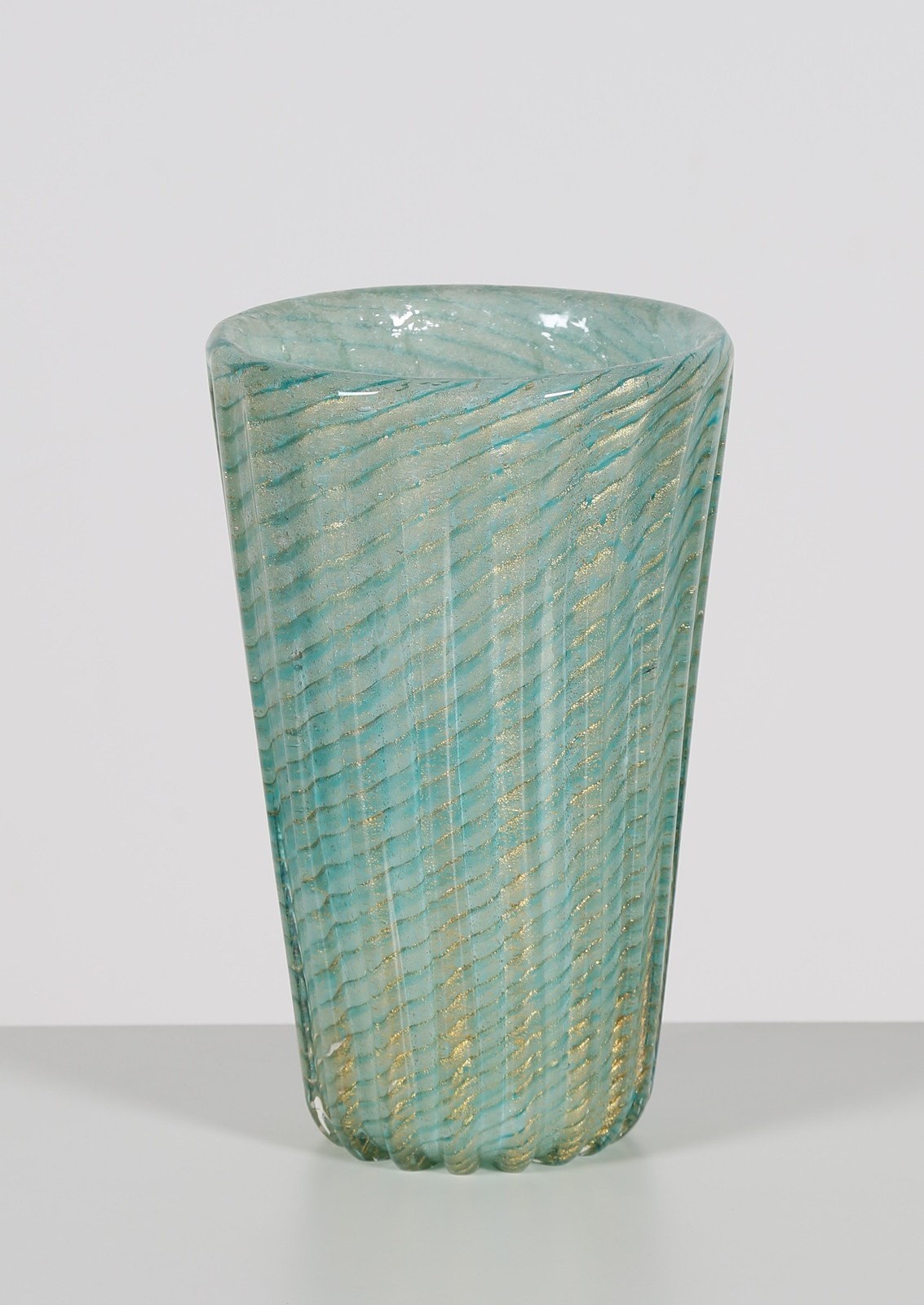 BAROVIER ERCOLE (1889 - 1974) Vaso cordonato, acqua marina e foglia oro, per...