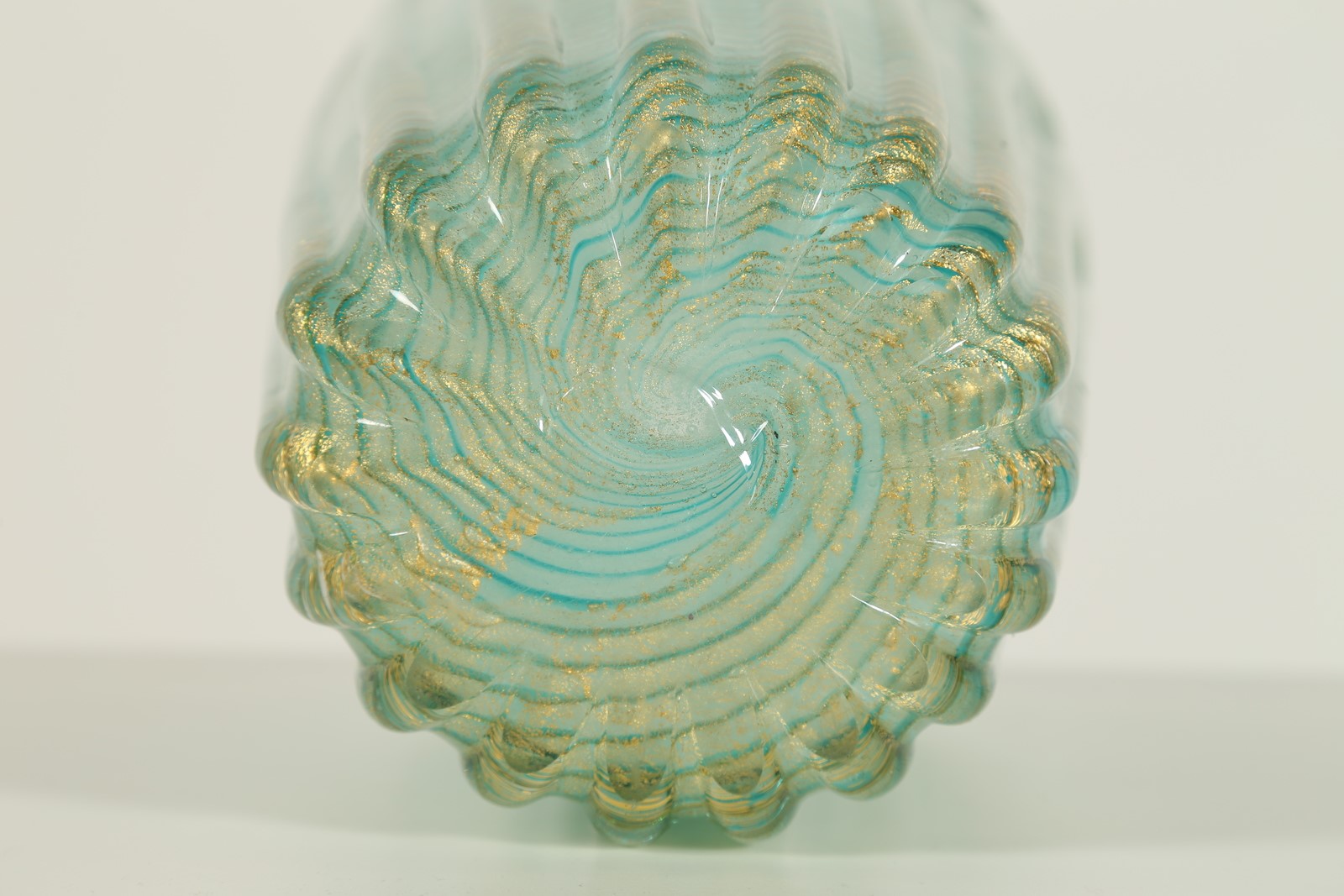 BAROVIER ERCOLE (1889 - 1974) Vaso cordonato, acqua marina e foglia oro, per Barovier e Toso, anni 40. . Cm 21,00 x 32,50.