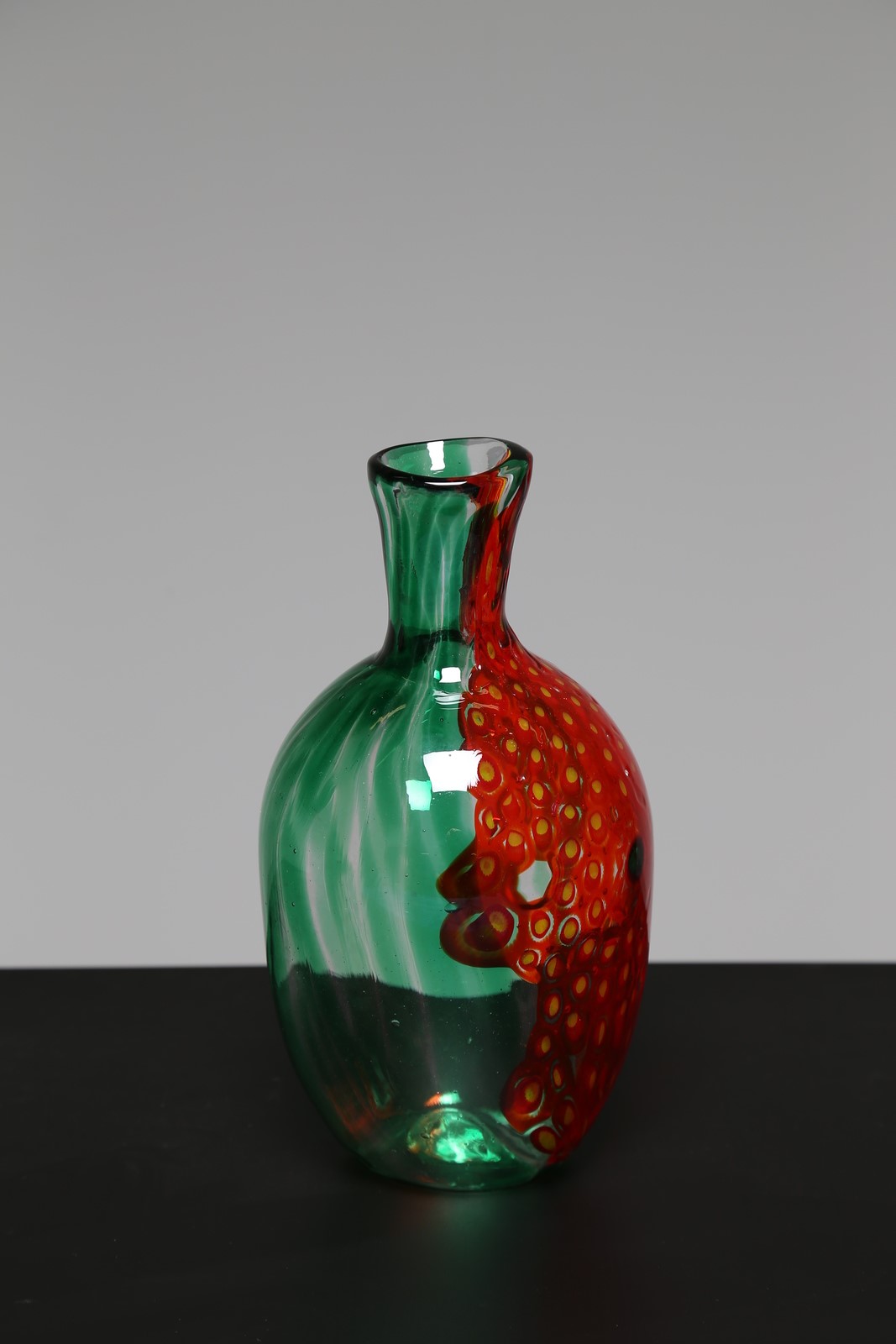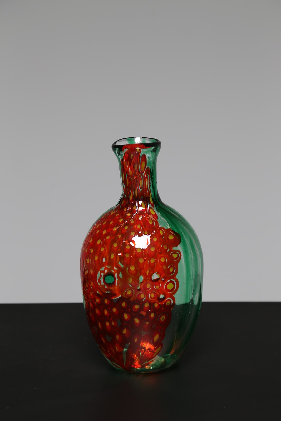 A.V.E.M Vaso in vetro con cascata di murrine colorate su un lato e lavorazione a canne sul retro, anni 50. -. Cm 14,00 x 27,50 x 14,00.