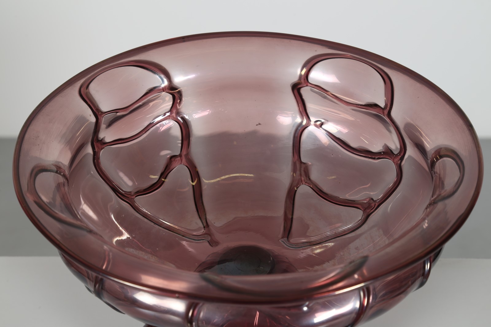 ZECCHIN VITTORIO (1878 - 1947) Grande alzata in vetro con applicazioni a caldo in ametista, per M.V.M. Cappellin, anni 30. -. Cm 33,00 x 23,50.