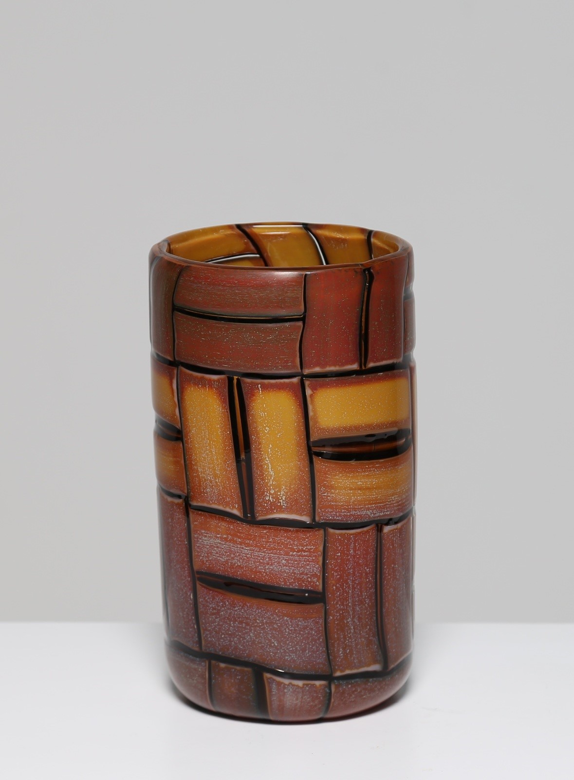 BAROVIER ERCOLE (1889 - 1974) Vaso Tessere ambra. -. Cm 14,00 x 24,00 x 14,00.
