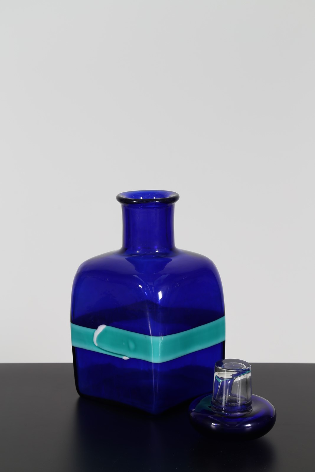 Lot 308 | BIANCONI FULVIO (1915 - 1996) Grande flacone con tappo in vetro blu e fascia...