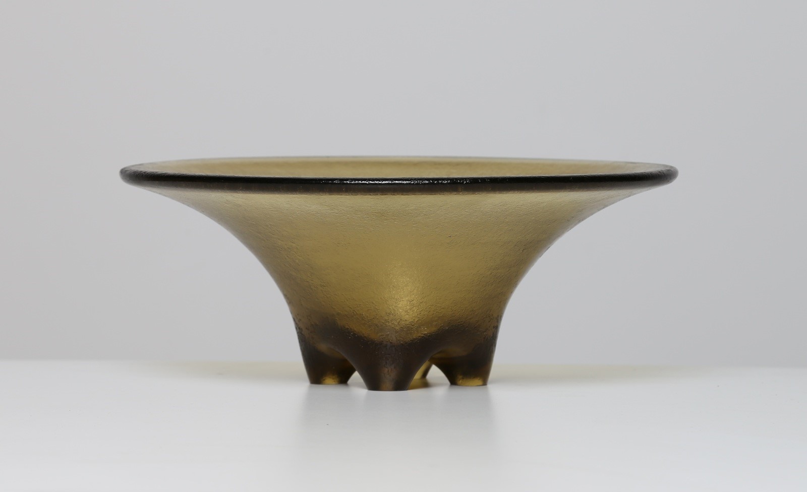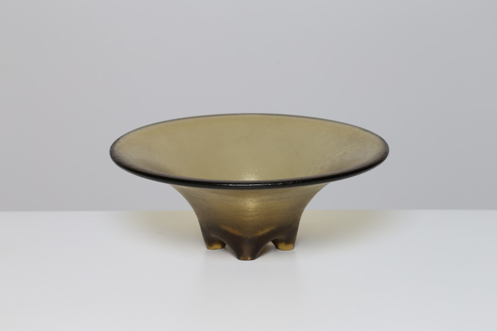 Lot 312 | VENINI Ciotola in vetro corroso iridato color ambra, anni 30, . -. Cm 32,50 x...