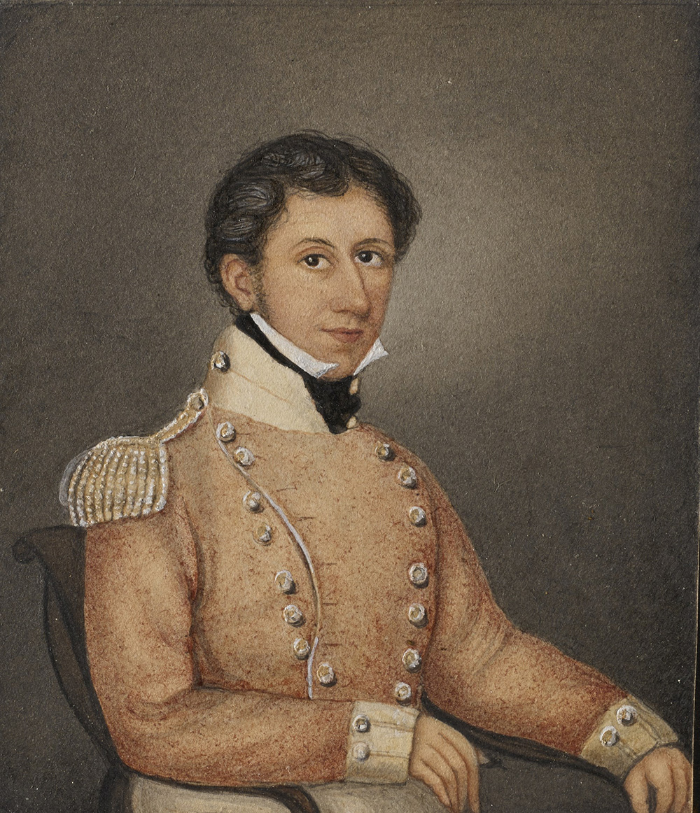 School of the 19th century "Young Officer" watercolour on paper (cm 10x8.5) Framed (defects)