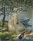 Firma indecifrata "Picnic sulla riva, 1933" olio su cartone telato (cm 26,5x21,5) Firmato in basso a sinistra. Inscritto e datato al retro. In cornice