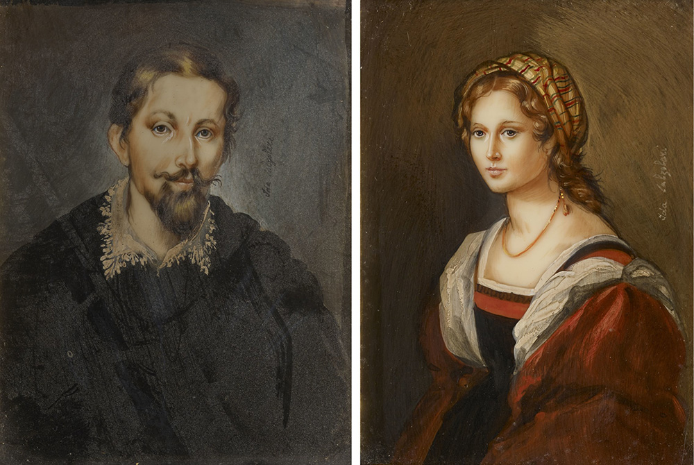 Ida Calzolari (1936) "Ritratti dall'antico" coppia di miniature su...