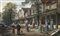 "Village Scene with Figures" oil on paper applied to board (cm 20x32) Signed and dated 1888. Framed