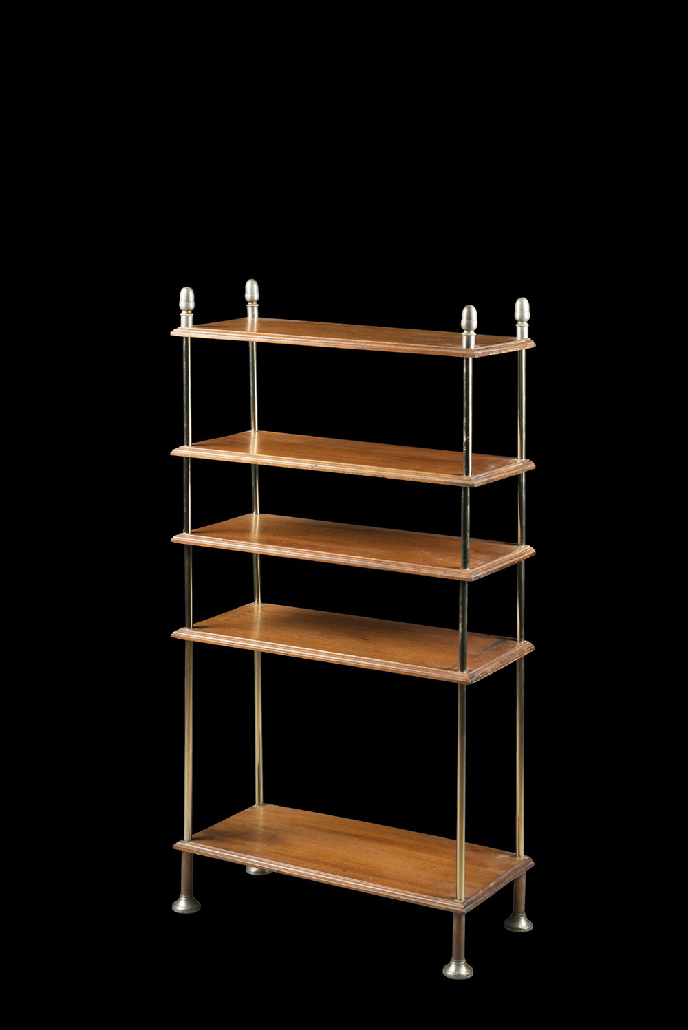 Lot 51 | Etagère in legno a cinque ripiani e montanti in metallo, inizio sec....