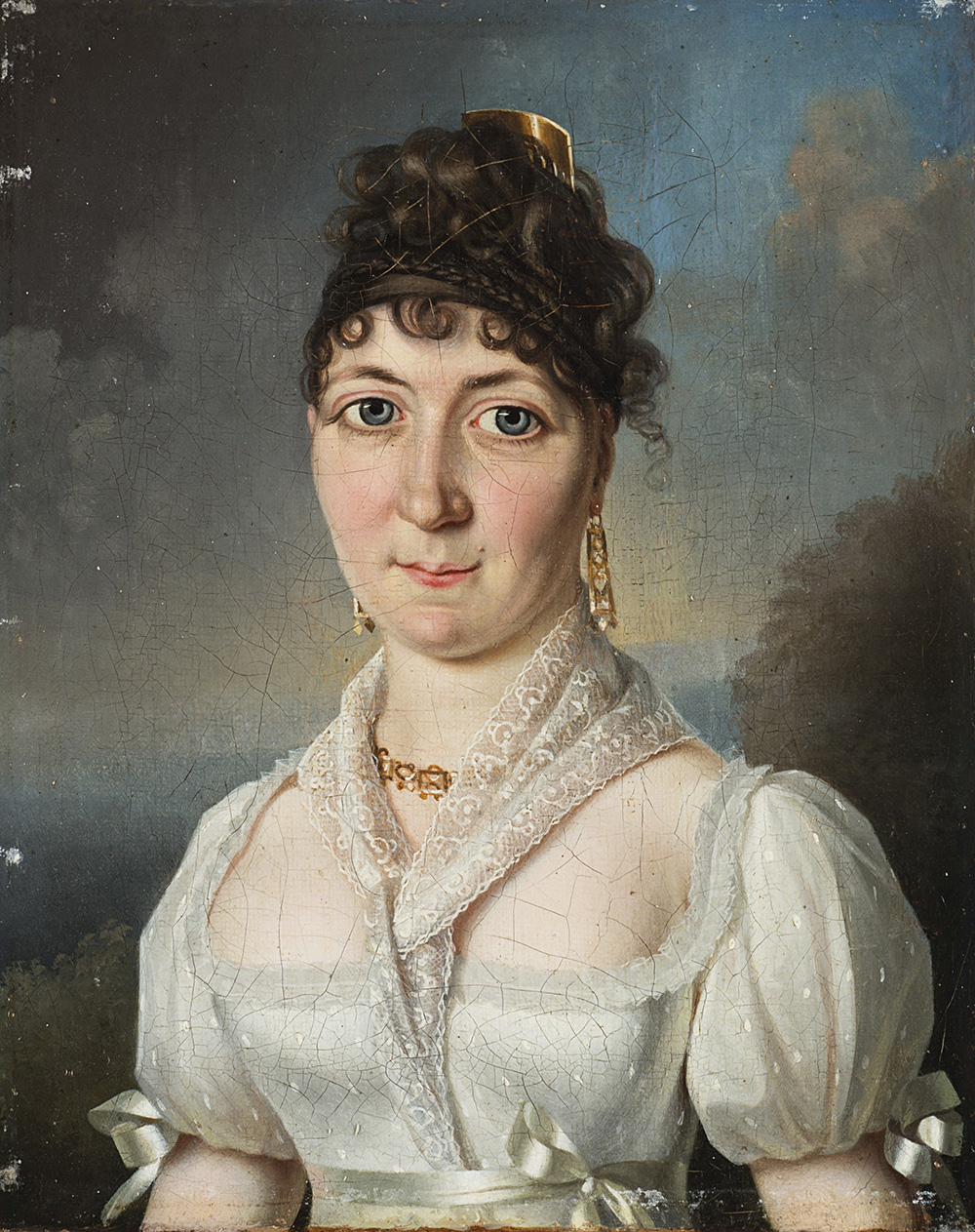 Scuola dell'inizio del sec. XIX "Ritratto di gentildonna in abito bianco...