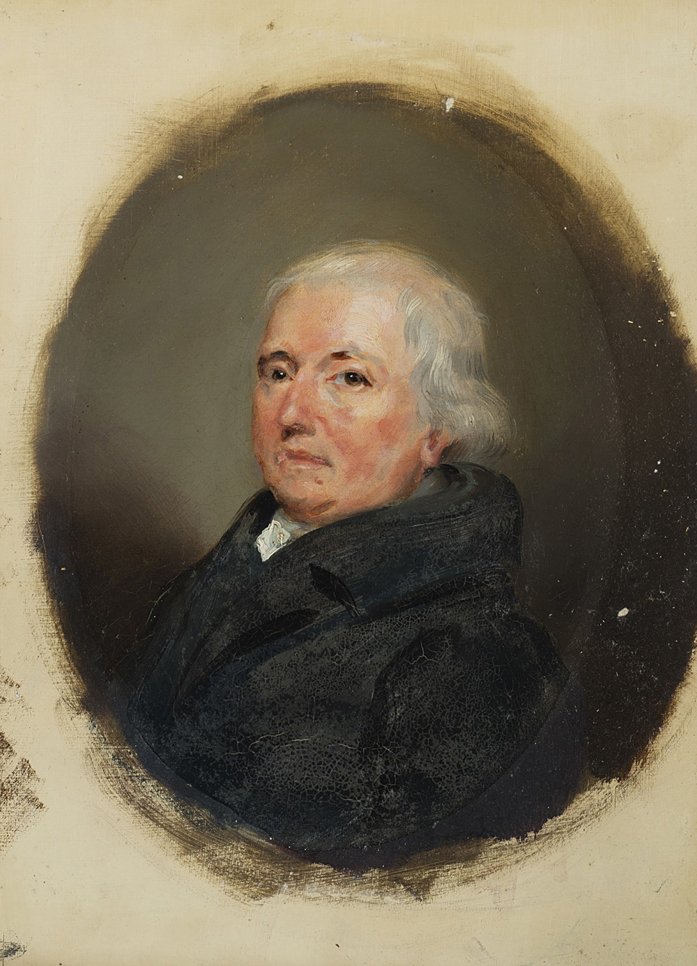 Unknown "Male Portrait with Black Coat", oil on pressed cardboard (cm 21x15) Framed defects)