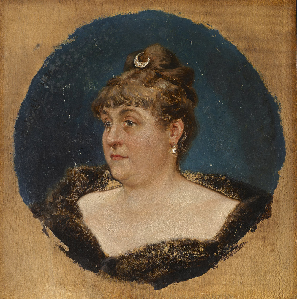 School of the second half of the 19th century "Portrait of a Lady in Fur coat" oil on panel (cm 15x15) (defects)