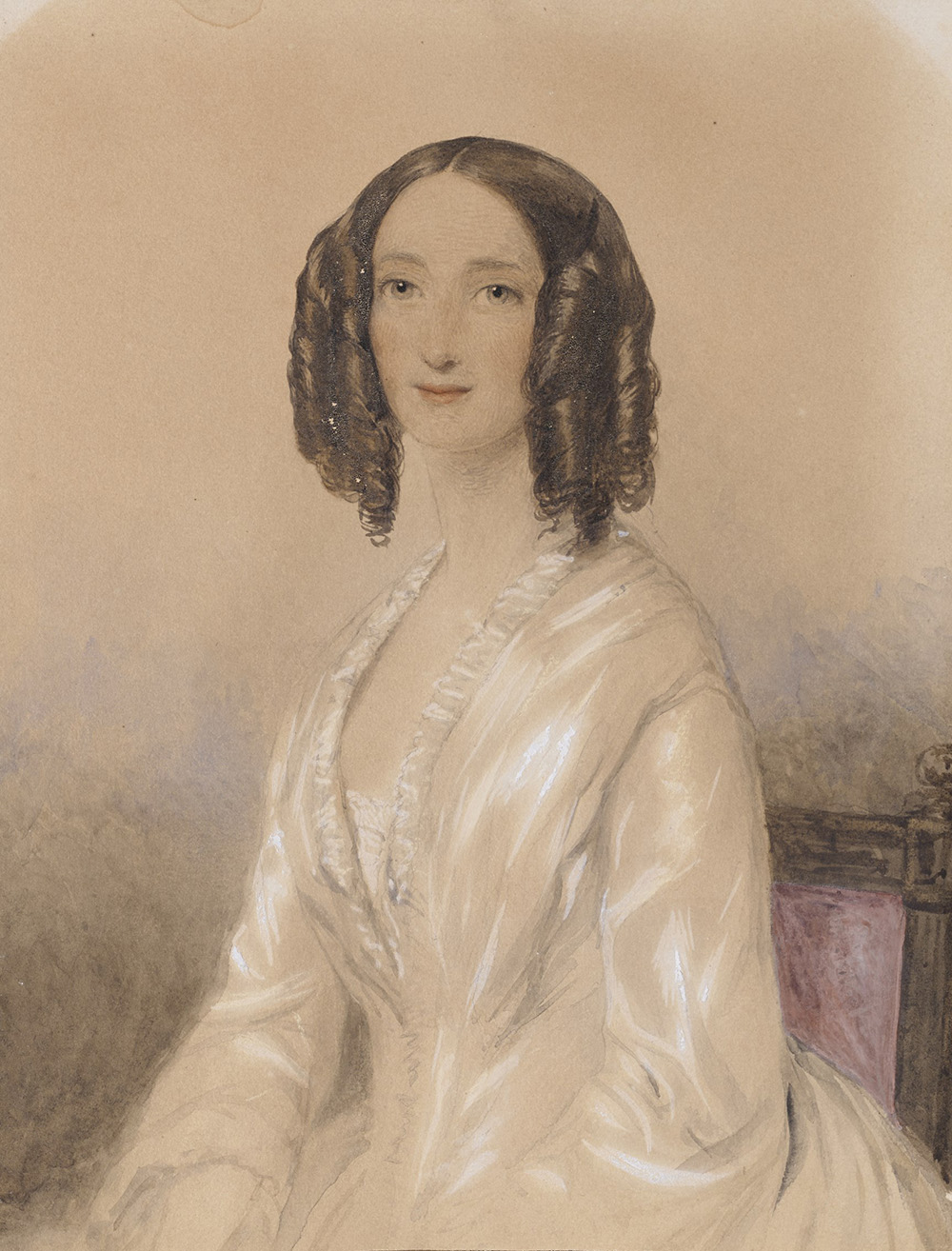 Scuola del sec. XIX "Gentildonna in veste bianca" tecnica mista su carta (cm 29,5x22,5) In cornice in legno di frutto