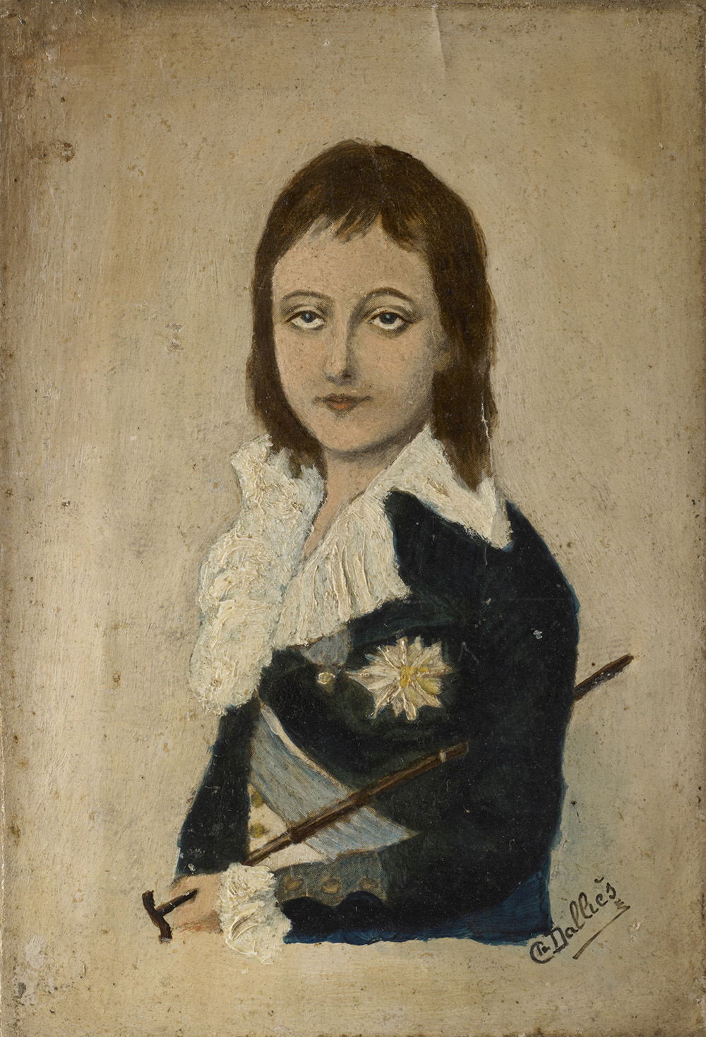 Author unknown "Portrait of Louis XVII" oil on board (cm 14x9.5) Signed at bottom right. Framed