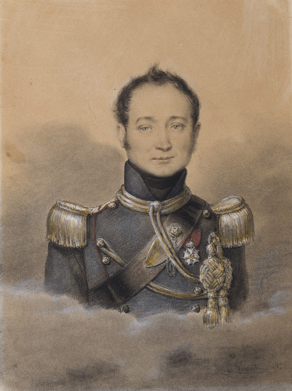 Pierre Lecomte (sec. XIX) "Ritratto di ufficiale di cavalleria del Regno...