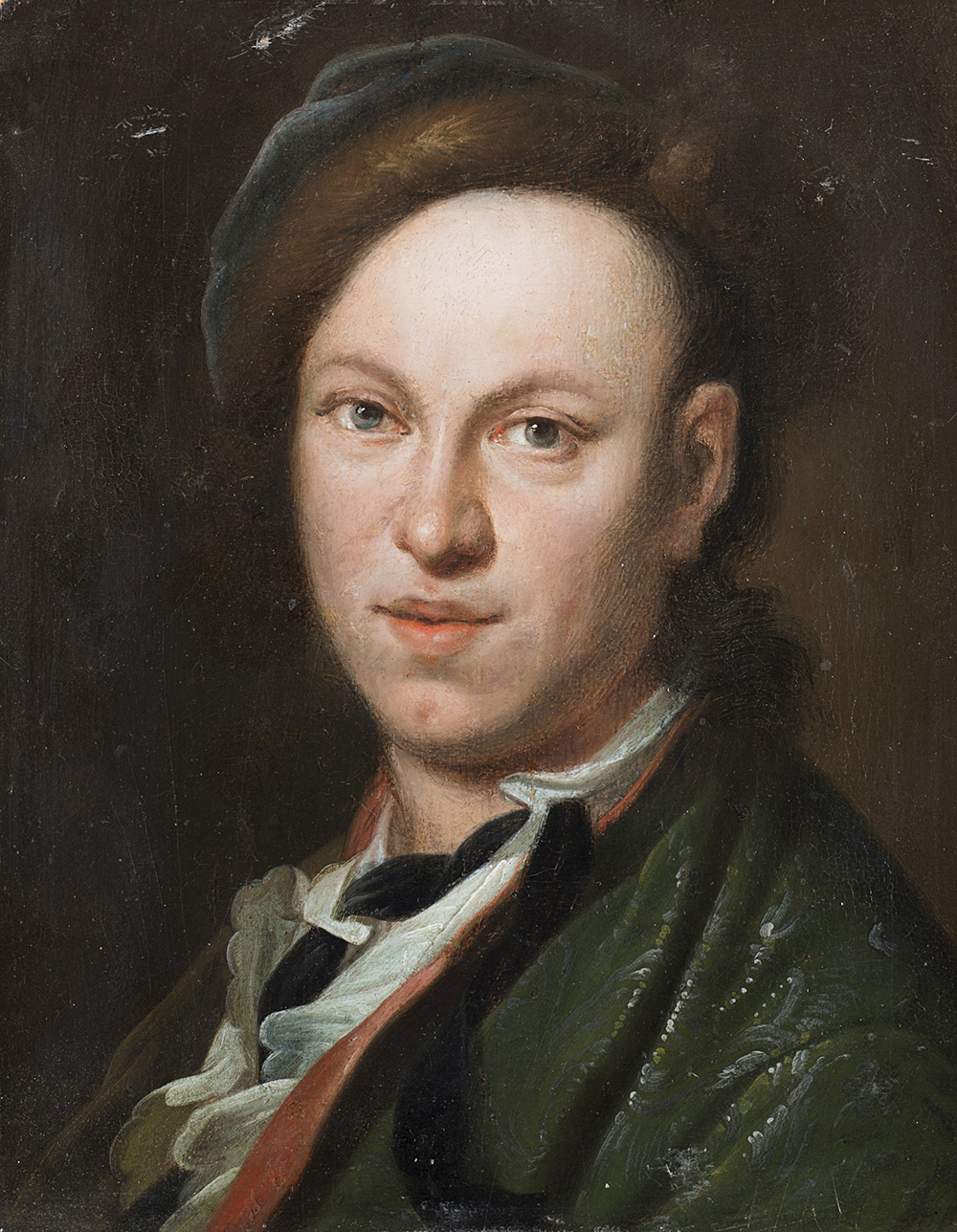Master of the 18th century "Portrait of a Gentleman in a Green Shirt" oil on panel (cm 18x14). Framed