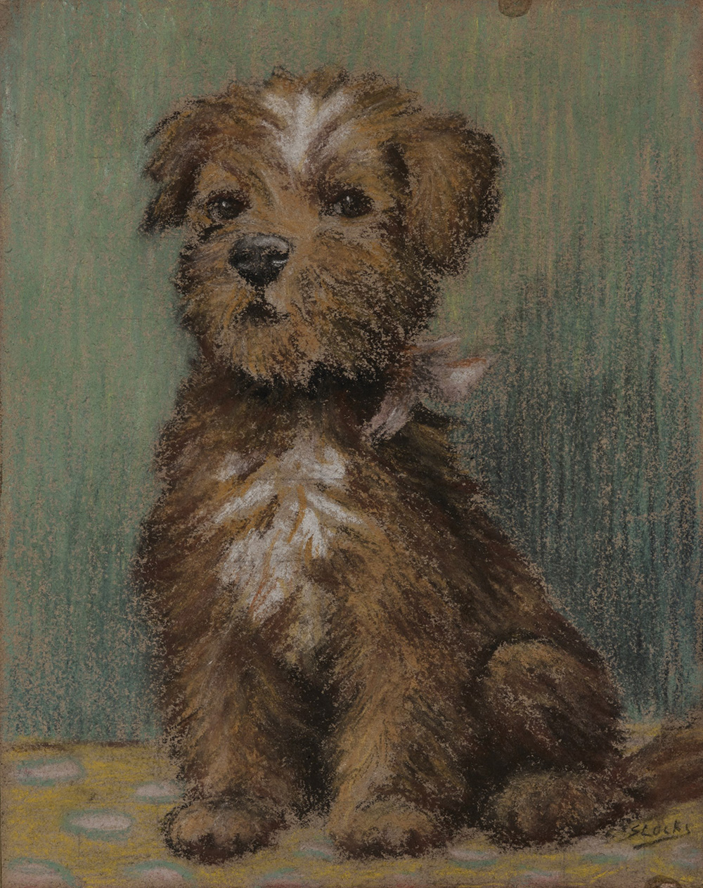 Slock (20th century) "Portriat of a Puppy" mixed media on paper (cm 23x18) Signed at bottom right. Framed (defects)