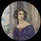 Scuola del sec. XX "Gentildonna in abito porpora con paesaggio sullo sfondo" miniatura su avorio (d. cm 12) Firmata Emy in basso a destra. In cornice in legno dorato