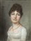 School of the 19th century "Portrait of a Lady in a White Dress" coloured pastels on paper applied to board (cm 21x 15,5) Framed (defects)