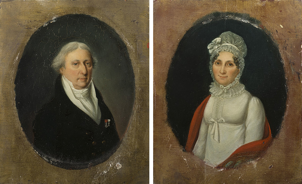 School of the 19th century "Gentleman and Lady" pair of oils on panel (cm 17x14) Framed