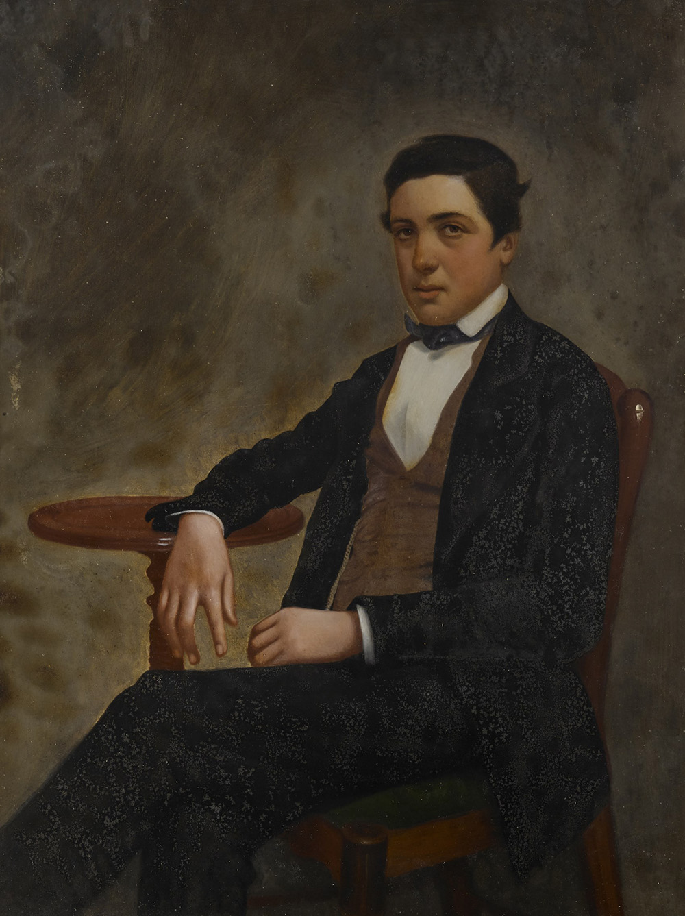 School of the 19th century "Portrait of a Gentleman" reverse painting (cm 26x19.5) Framed (defects)